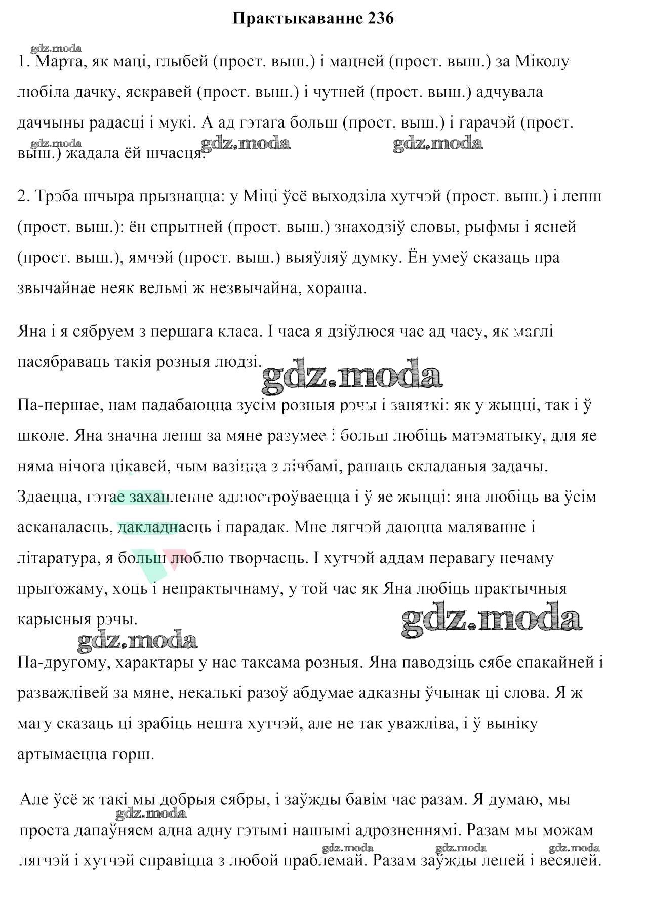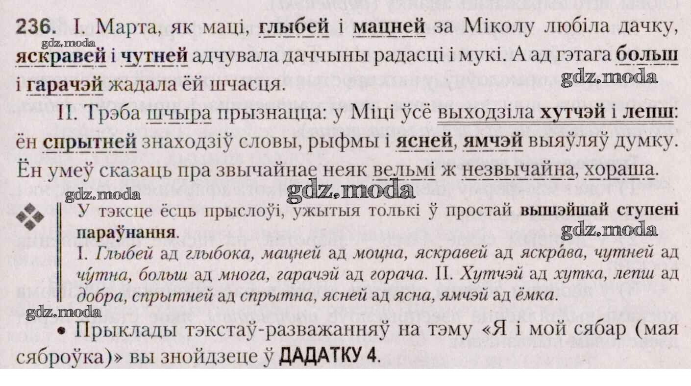 ГДЗ решение к заданию № 236 Белоруская мова 7 класс Валочка Г. М. Национальный институт образования 2020 ФГОС бесплатно на гдз.мода!