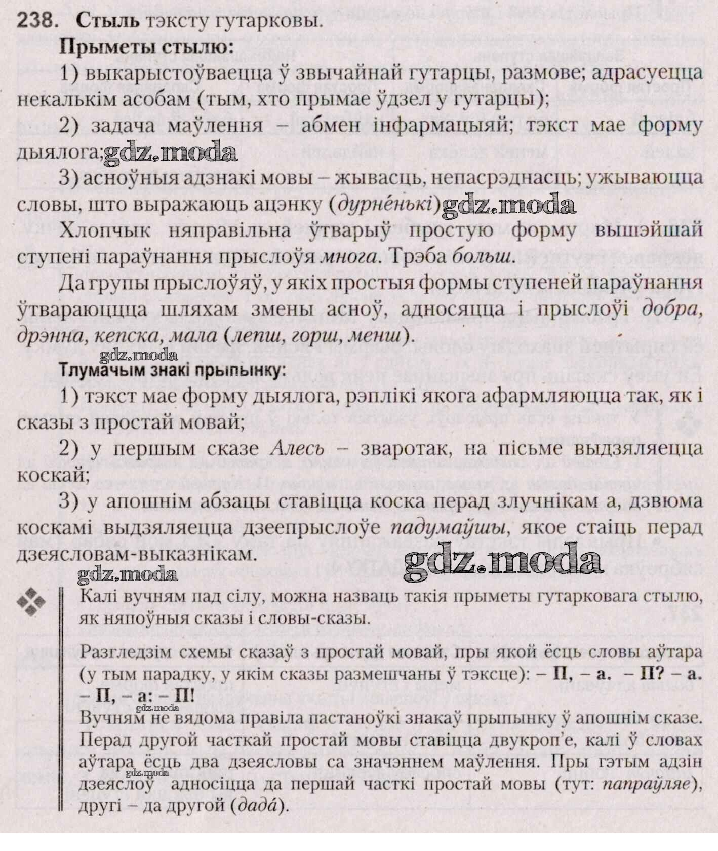 ГДЗ решение к заданию № 238 Белоруская мова 7 класс Валочка Г. М. Национальный институт образования 2020 ФГОС бесплатно на гдз.мода!