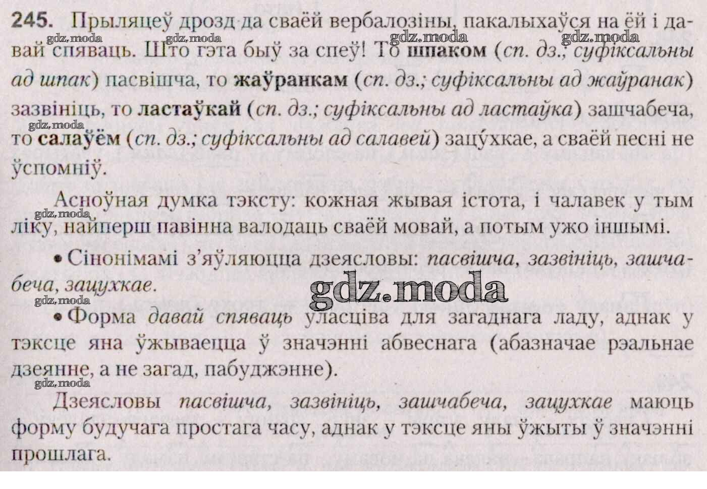 ГДЗ решение к заданию № 245 Белоруская мова 7 класс Валочка Г. М. Национальный институт образования 2020 ФГОС бесплатно на гдз.мода!