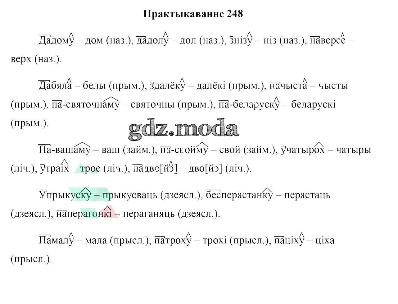 ГДЗ решение к заданию № 248 Белоруская мова 7 класс Валочка Г. М. Национальный институт образования 2020 ФГОС бесплатно на гдз.мода!