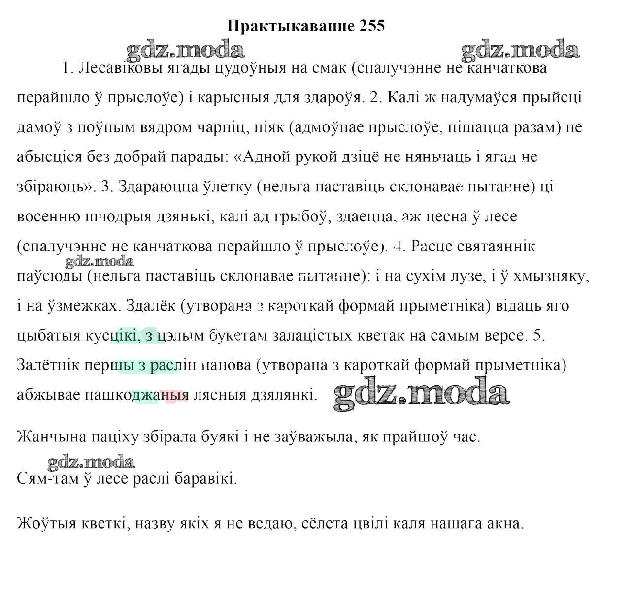 ГДЗ решение к заданию № 255 Белоруская мова 7 класс Валочка Г. М. Национальный институт образования 2020 ФГОС бесплатно на гдз.мода!