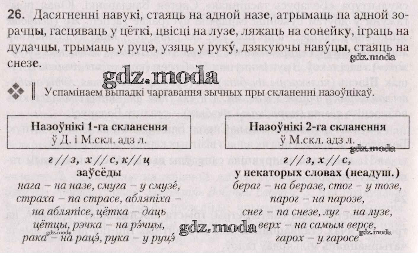 ГДЗ решение к заданию № 26 Белоруская мова 7 класс Валочка Г. М. Национальный институт образования 2020 ФГОС бесплатно на гдз.мода!