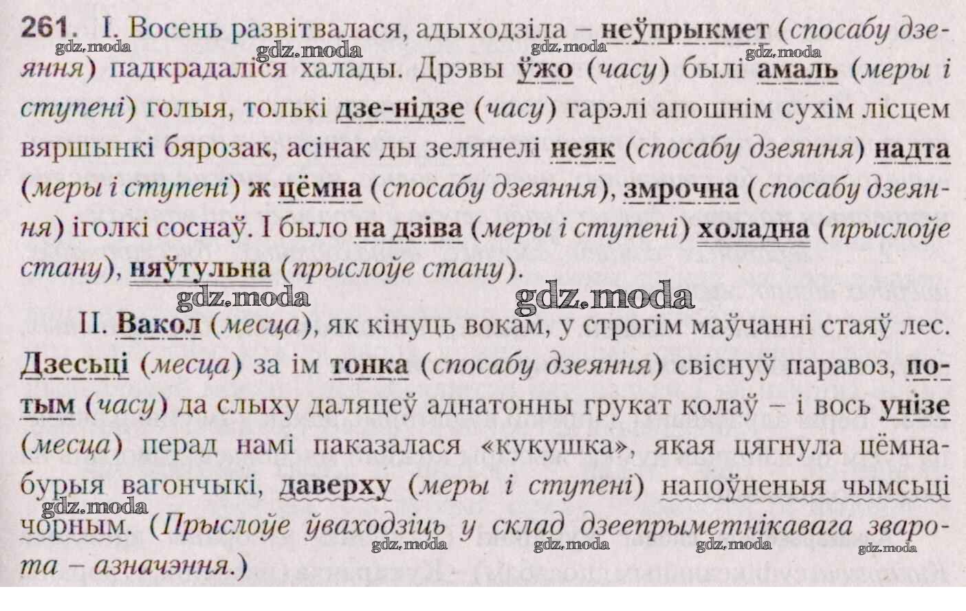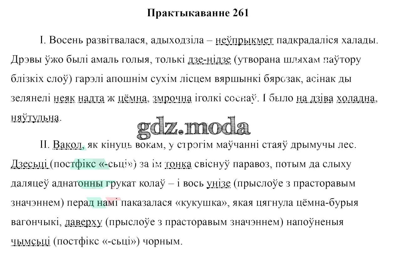 ГДЗ решение к заданию № 261 Белоруская мова 7 класс Валочка Г. М. Национальный институт образования 2020 ФГОС бесплатно на гдз.мода!