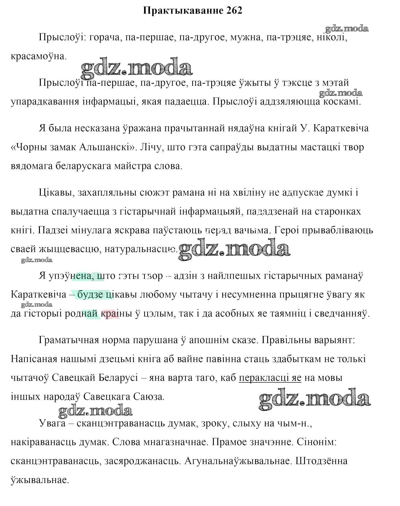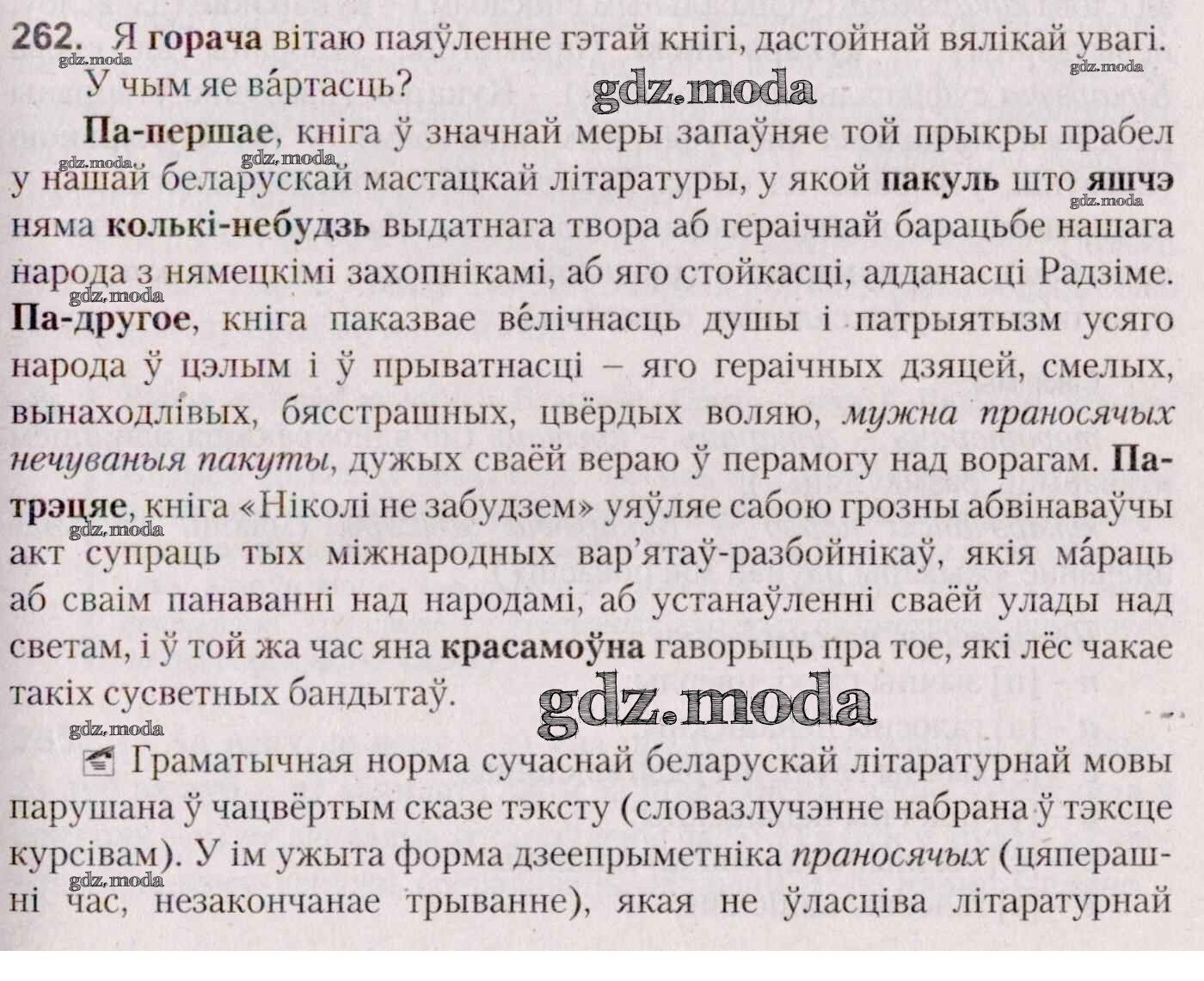 ГДЗ решение к заданию № 262 Белоруская мова 7 класс Валочка Г. М. Национальный институт образования 2020 ФГОС бесплатно на гдз.мода!