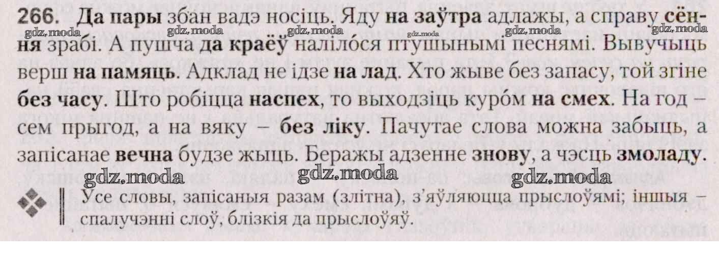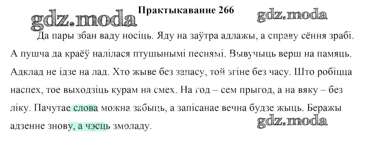 ГДЗ решение к заданию № 266 Белоруская мова 7 класс Валочка Г. М. Национальный институт образования 2020 ФГОС бесплатно на гдз.мода!