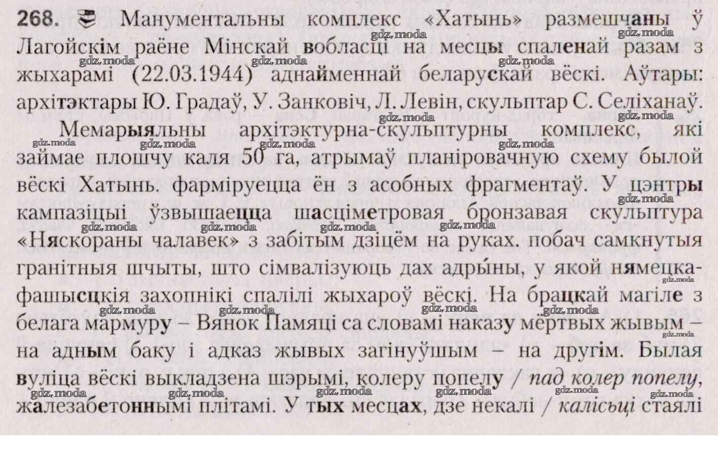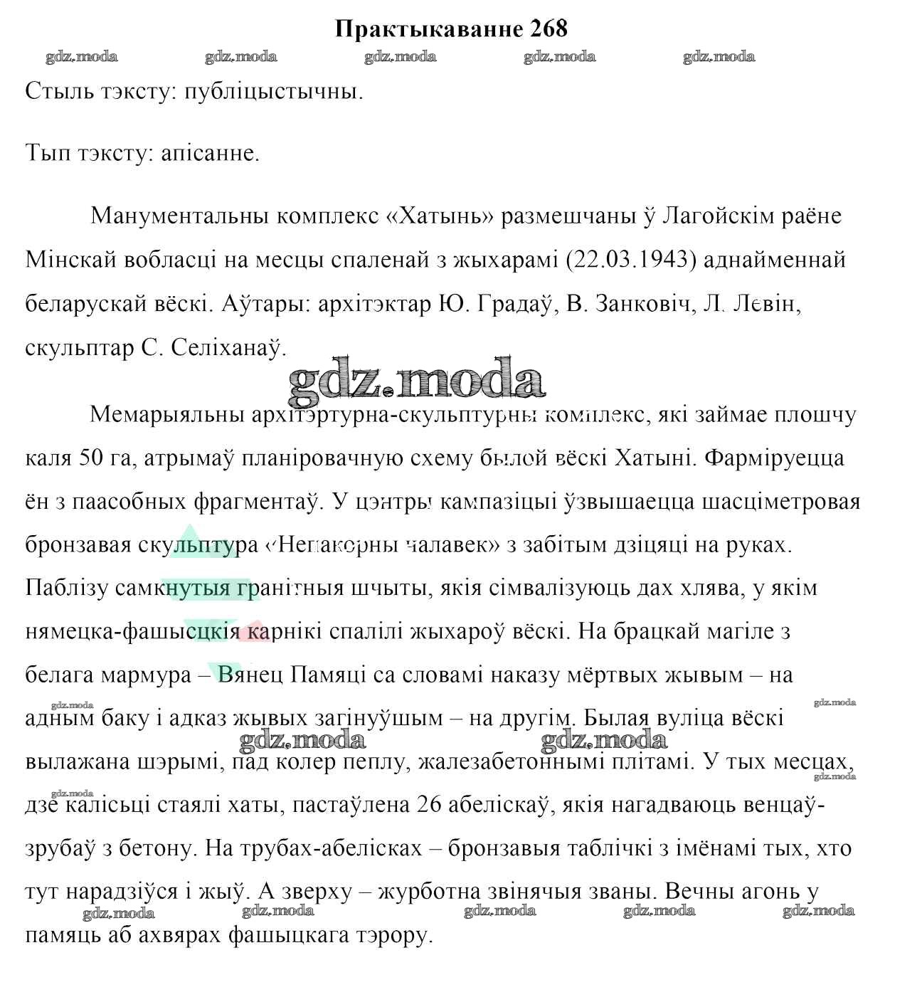 ГДЗ решение к заданию № 268 Белоруская мова 7 класс Валочка Г. М. Национальный институт образования 2020 ФГОС бесплатно на гдз.мода!