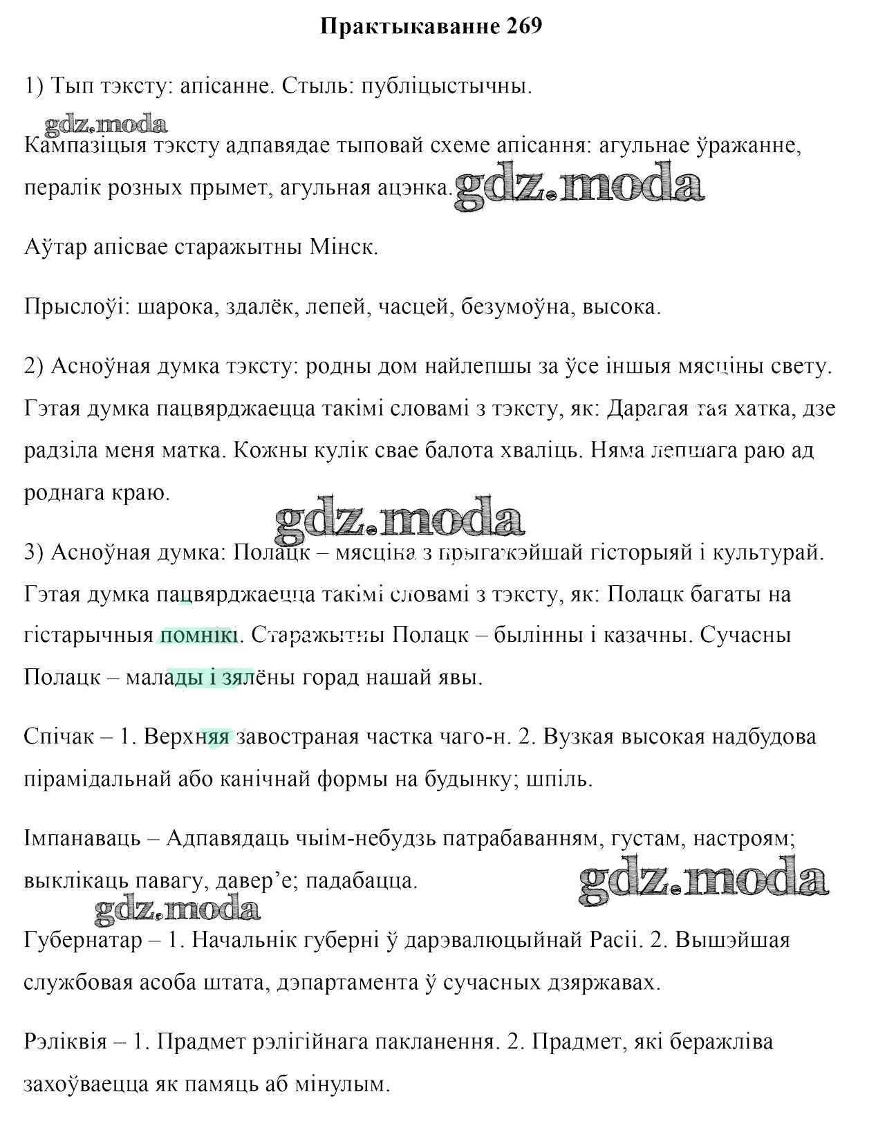 ГДЗ решение к заданию № 269 Белоруская мова 7 класс Валочка Г. М. Национальный институт образования 2020 ФГОС бесплатно на гдз.мода!