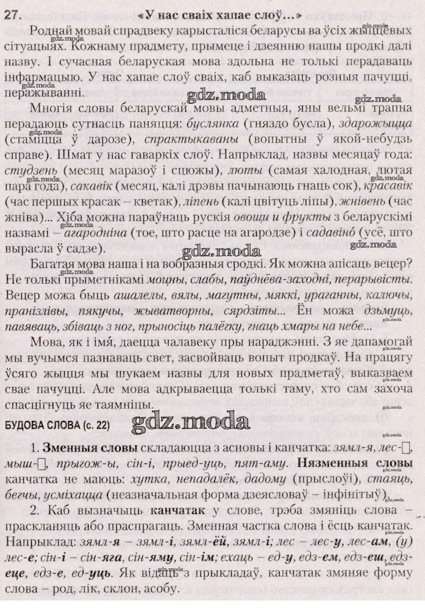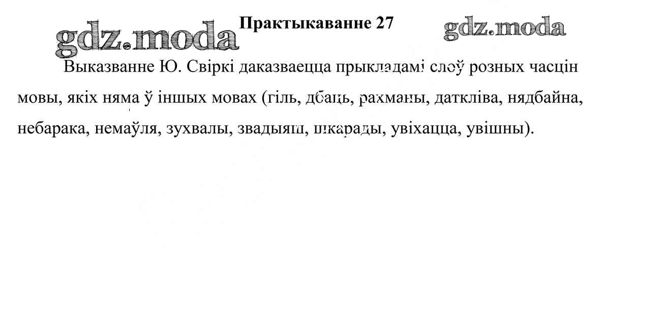 ГДЗ решение к заданию № 27 Белоруская мова 7 класс Валочка Г. М. Национальный институт образования 2020 ФГОС бесплатно на гдз.мода!