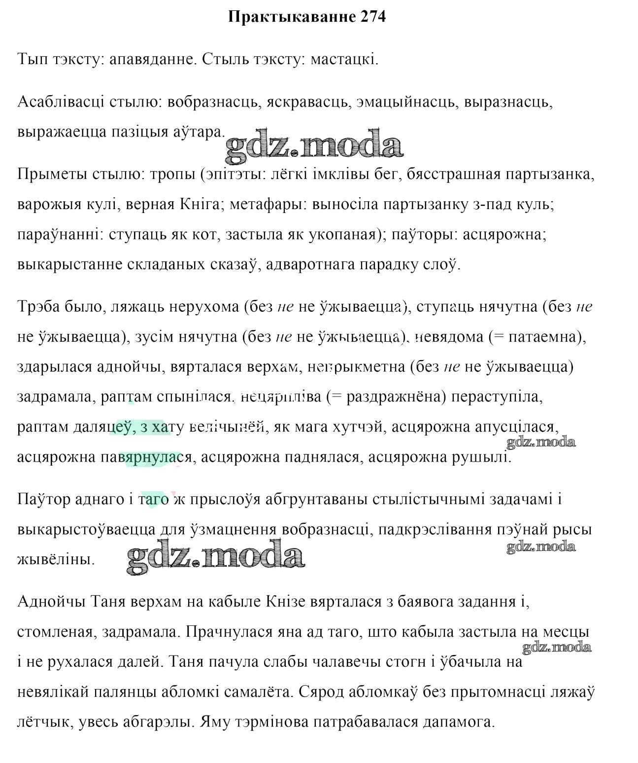 ГДЗ решение к заданию № 274 Белоруская мова 7 класс Валочка Г. М. Национальный институт образования 2020 ФГОС бесплатно на гдз.мода!