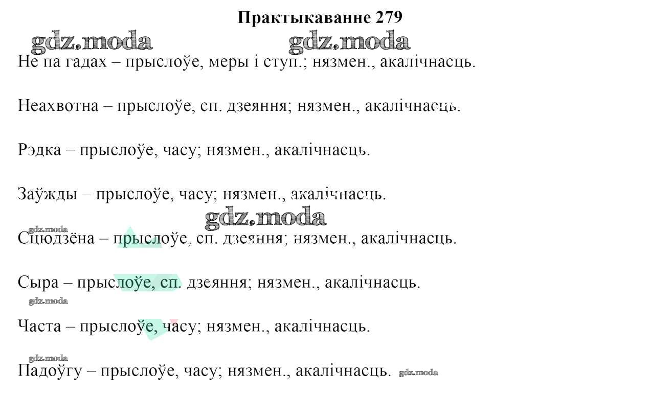 ГДЗ решение к заданию № 279 Белоруская мова 7 класс Валочка Г. М. Национальный институт образования 2020 ФГОС бесплатно на гдз.мода!
