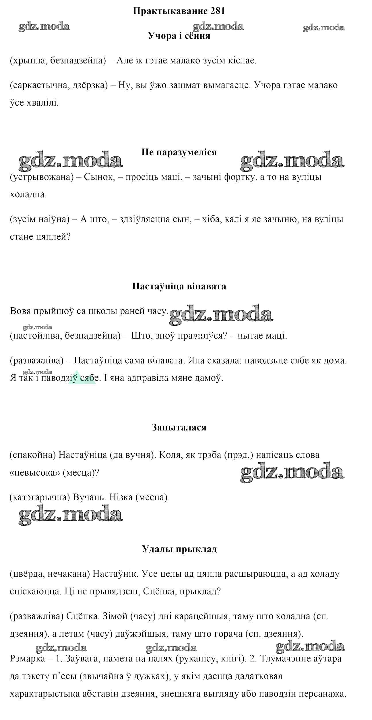 ГДЗ решение к заданию № 281 Белоруская мова 7 класс Валочка Г. М. Национальный институт образования 2020 ФГОС бесплатно на гдз.мода!
