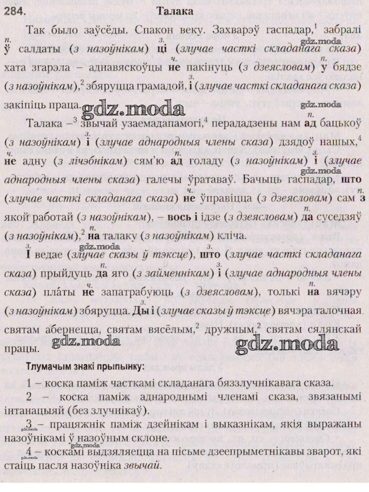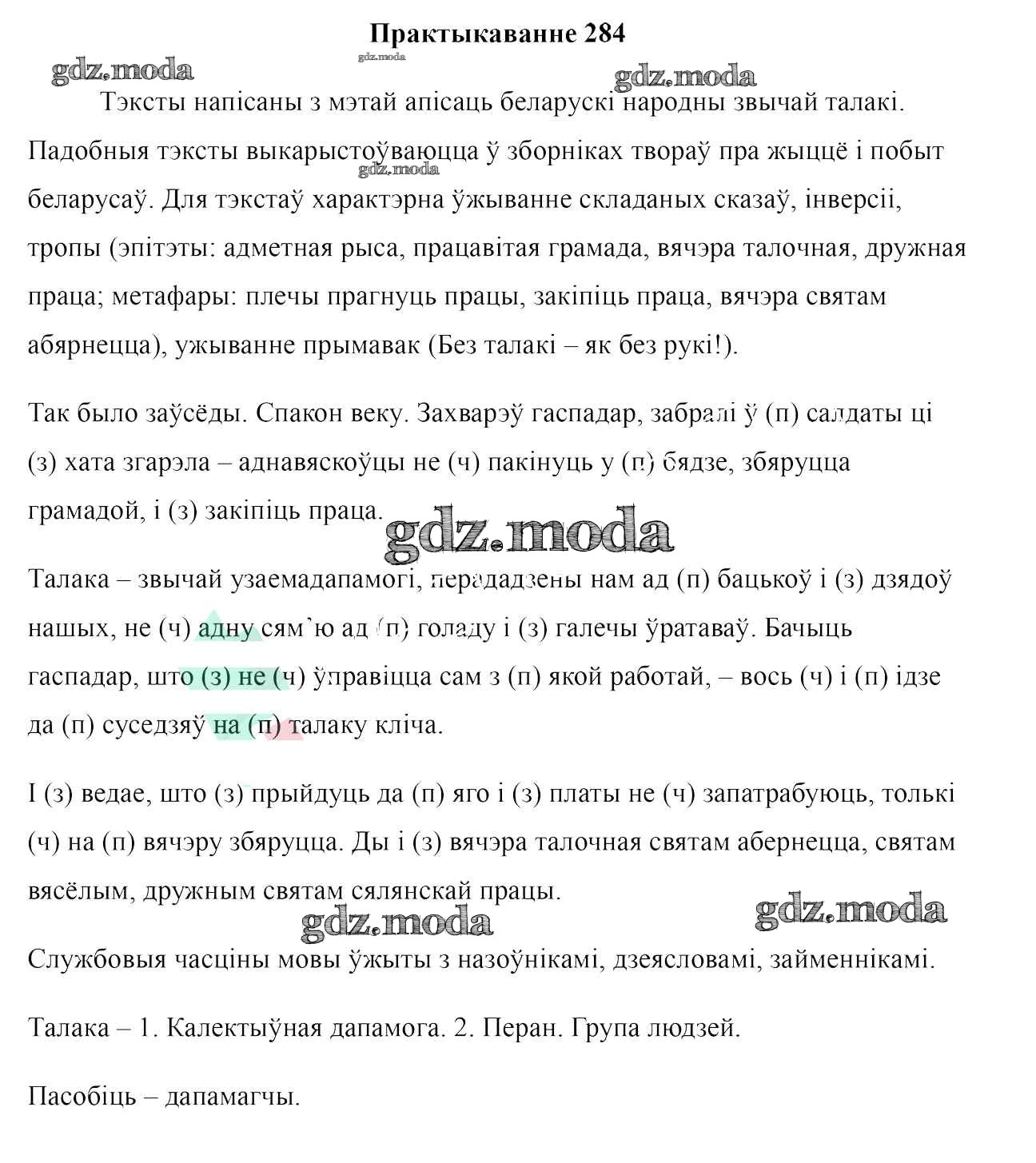 ГДЗ решение к заданию № 284 Белоруская мова 7 класс Валочка Г. М. Национальный институт образования 2020 ФГОС бесплатно на гдз.мода!
