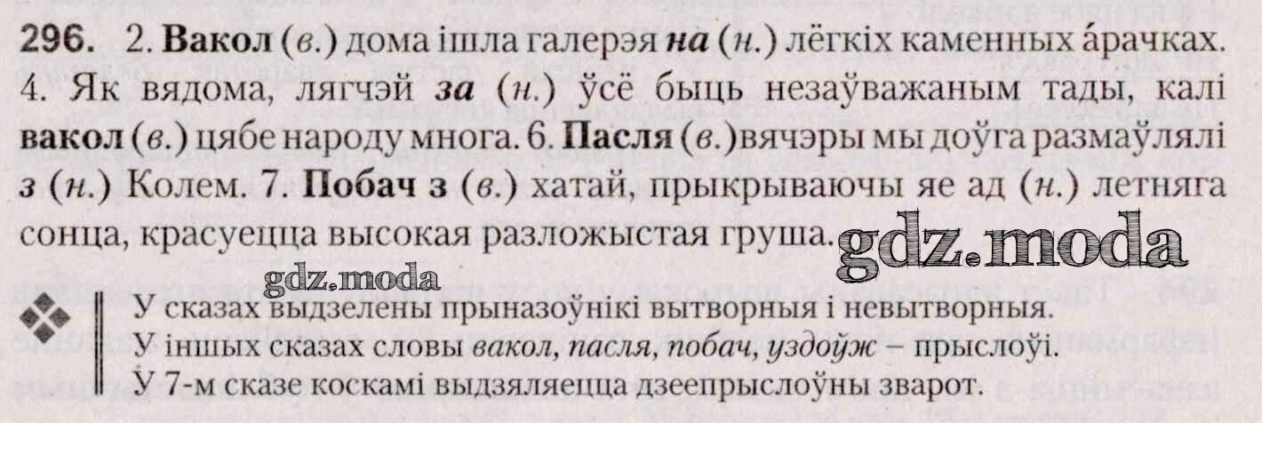 ГДЗ решение к заданию № 296 Белоруская мова 7 класс Валочка Г. М. Национальный институт образования 2020 ФГОС бесплатно на гдз.мода!