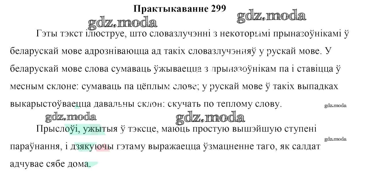 ГДЗ решение к заданию № 299 Белоруская мова 7 класс Валочка Г. М. Национальный институт образования 2020 ФГОС бесплатно на гдз.мода!
