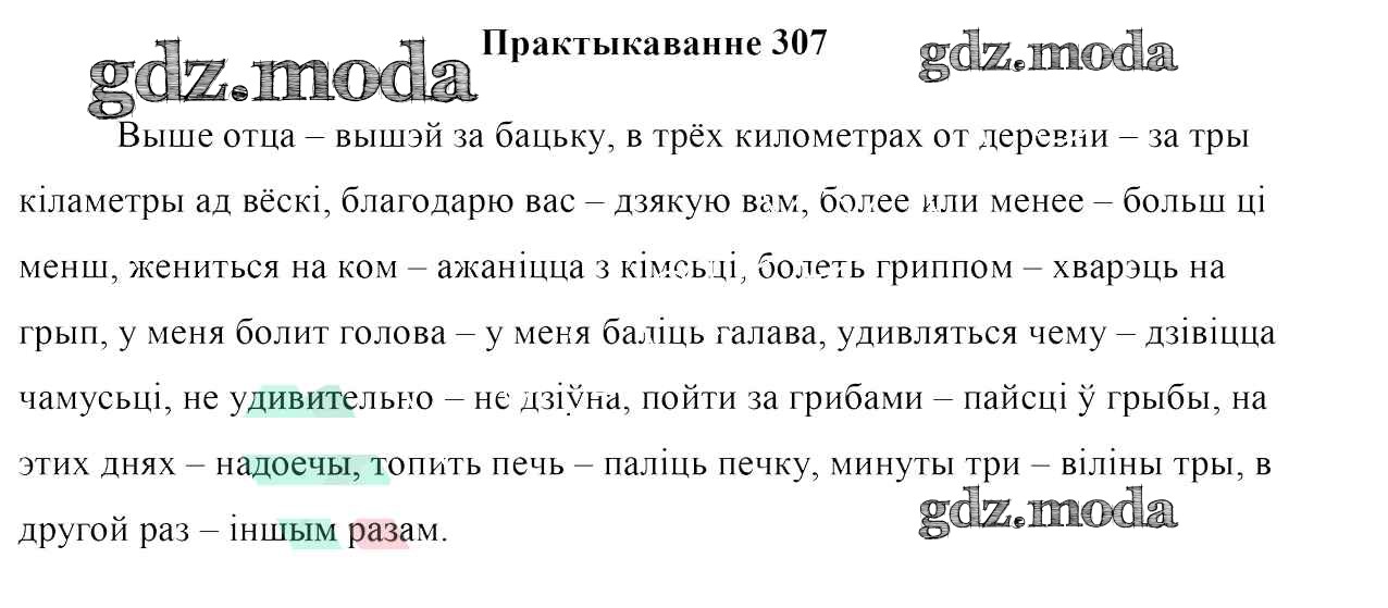 ГДЗ решение к заданию № 307 Белоруская мова 7 класс Валочка Г. М. Национальный институт образования 2020 ФГОС бесплатно на гдз.мода!