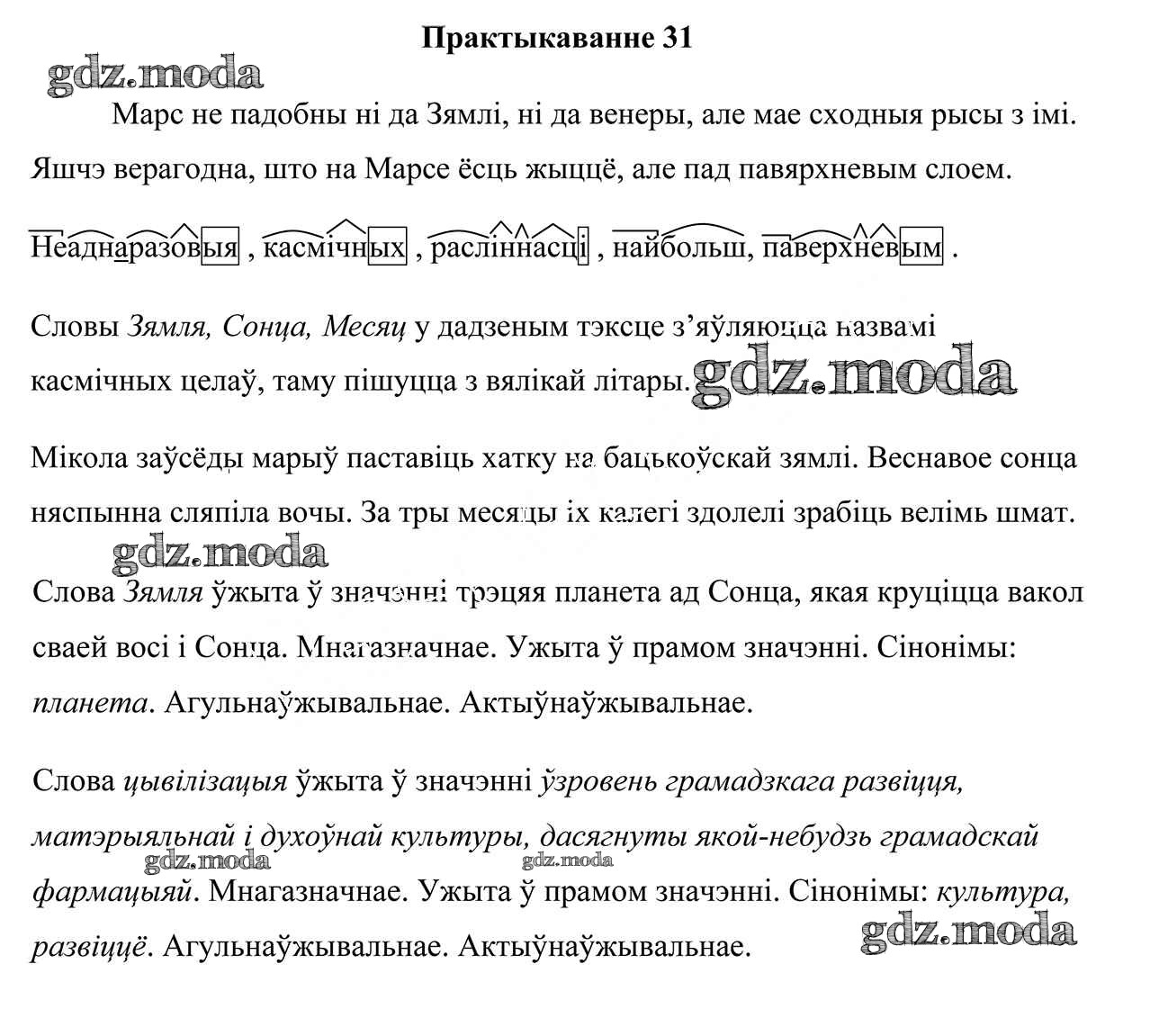 ГДЗ решение к заданию № 31 Белоруская мова 7 класс Валочка Г. М. Национальный институт образования 2020 ФГОС бесплатно на гдз.мода!