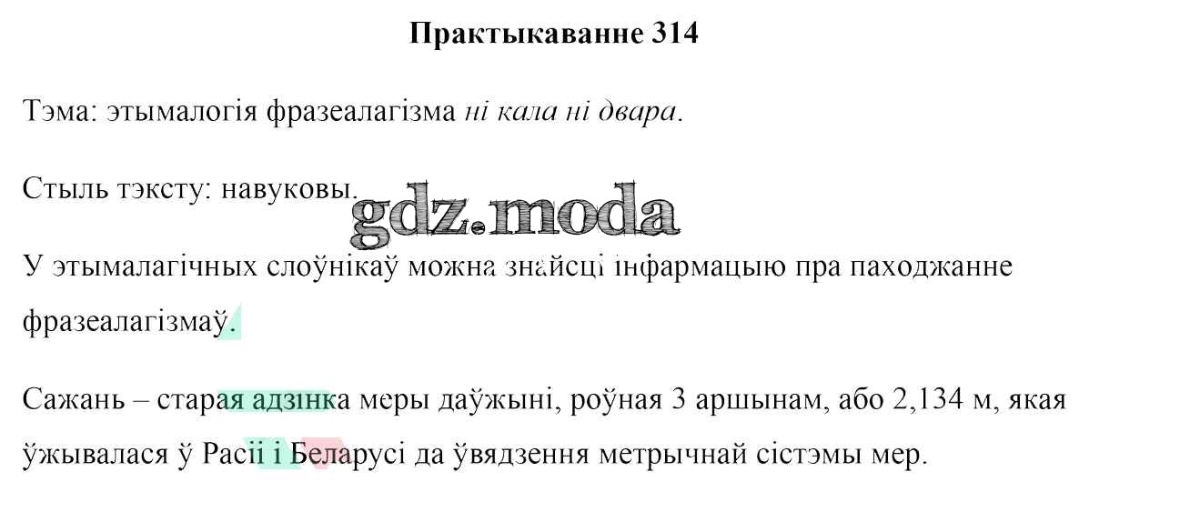 ГДЗ решение к заданию № 314 Белоруская мова 7 класс Валочка Г. М. Национальный институт образования 2020 ФГОС бесплатно на гдз.мода!
