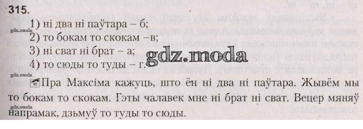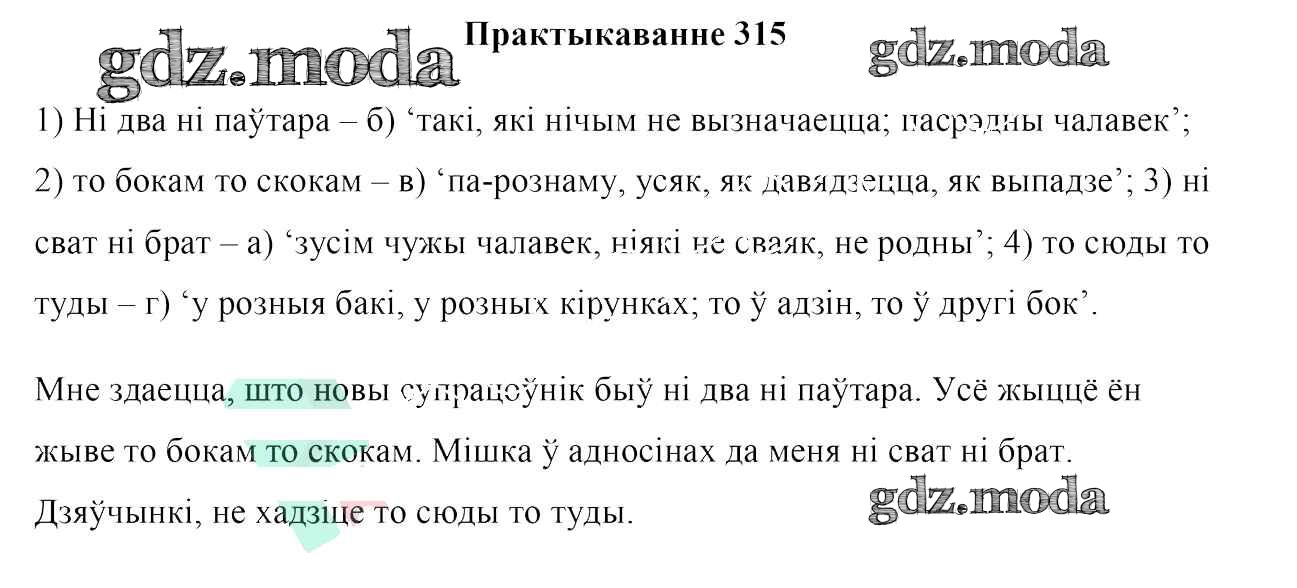ГДЗ решение к заданию № 315 Белоруская мова 7 класс Валочка Г. М. Национальный институт образования 2020 ФГОС бесплатно на гдз.мода!