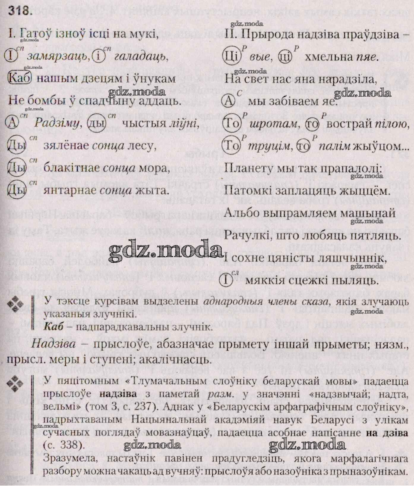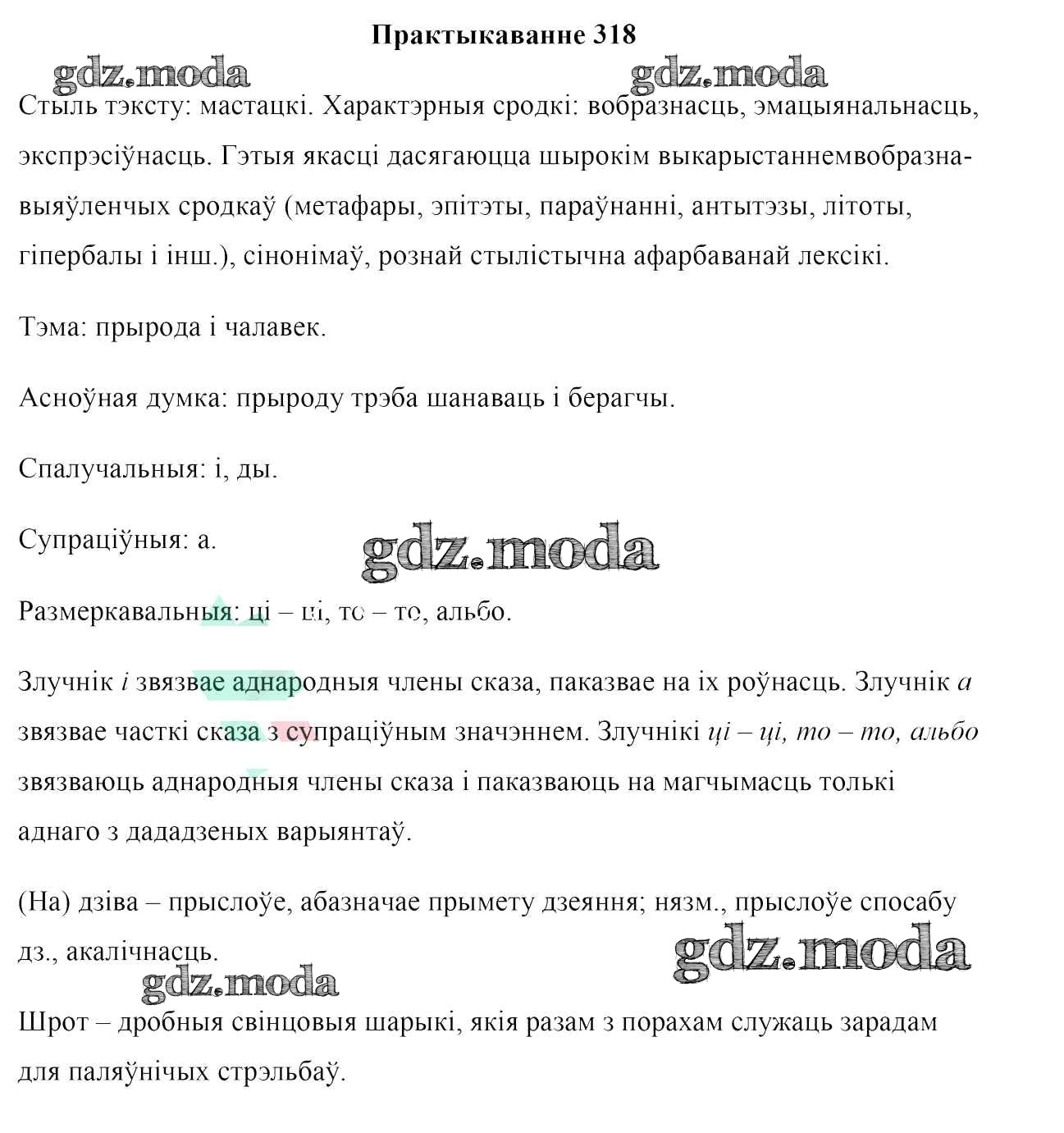 ГДЗ решение к заданию № 318 Белоруская мова 7 класс Валочка Г. М. Национальный институт образования 2020 ФГОС бесплатно на гдз.мода!