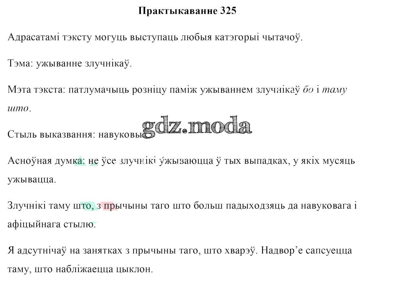ГДЗ решение к заданию № 325 Белоруская мова 7 класс Валочка Г. М. Национальный институт образования 2020 ФГОС бесплатно на гдз.мода!