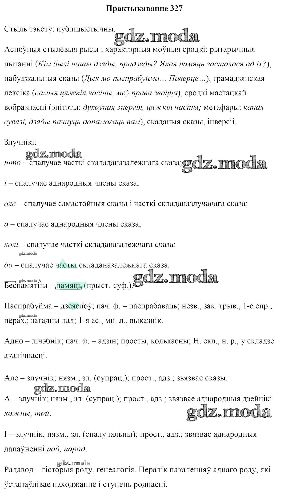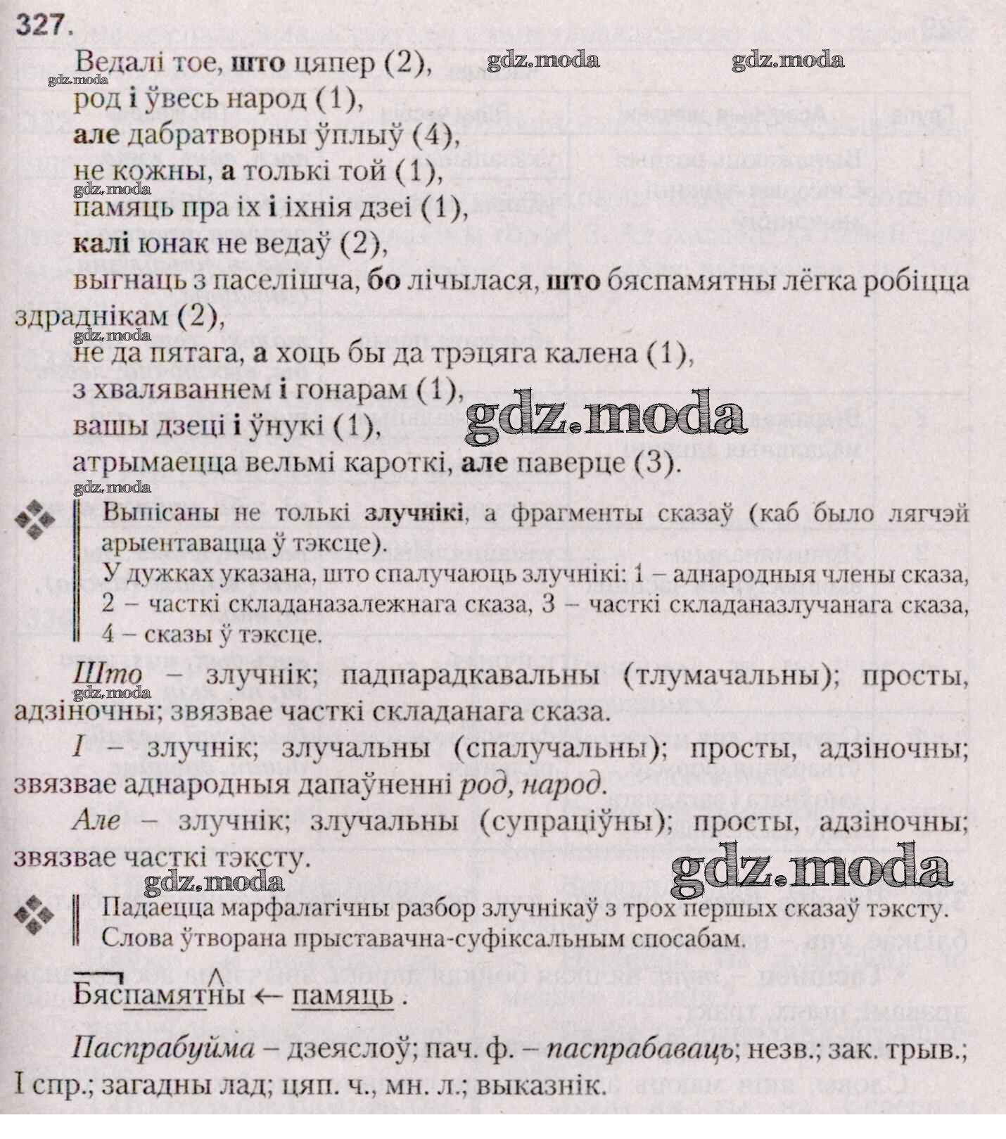 ГДЗ решение к заданию № 327 Белоруская мова 7 класс Валочка Г. М. Национальный институт образования 2020 ФГОС бесплатно на гдз.мода!