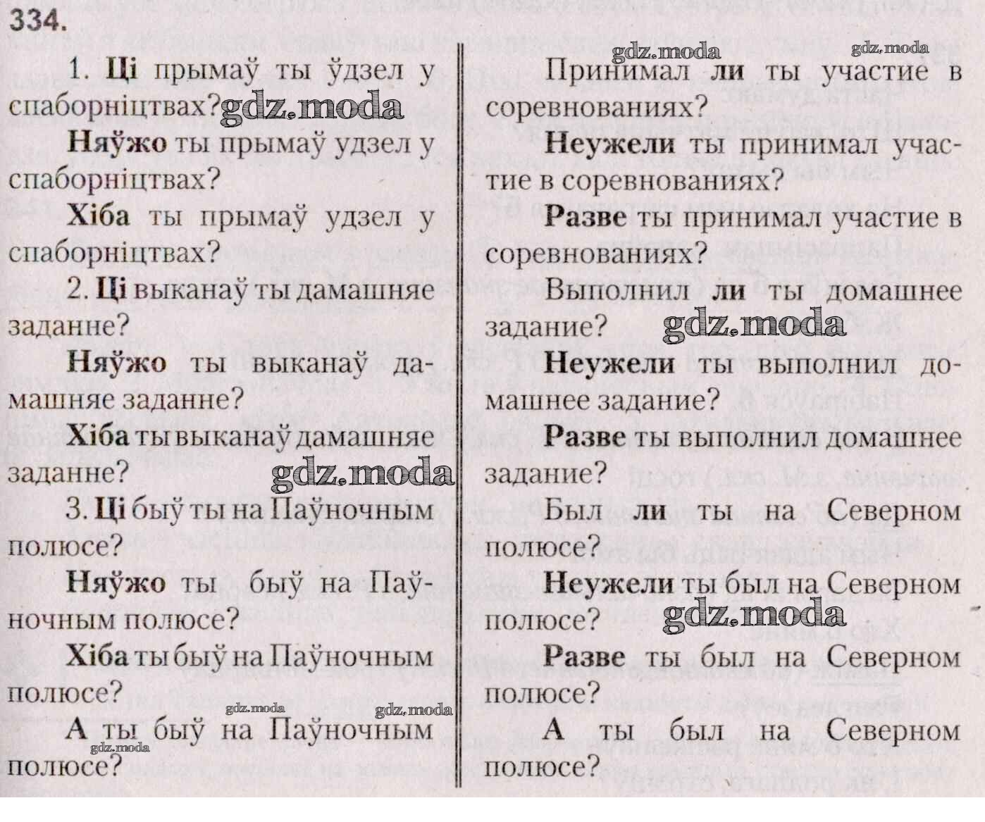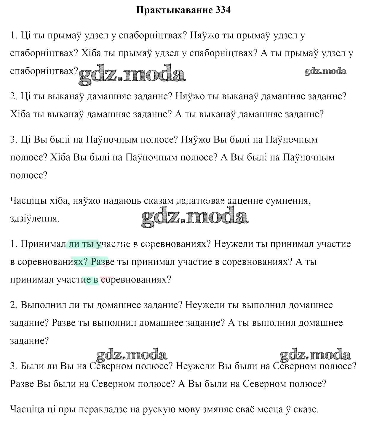 ГДЗ решение к заданию № 334 Белоруская мова 7 класс Валочка Г. М. Национальный институт образования 2020 ФГОС бесплатно на гдз.мода!