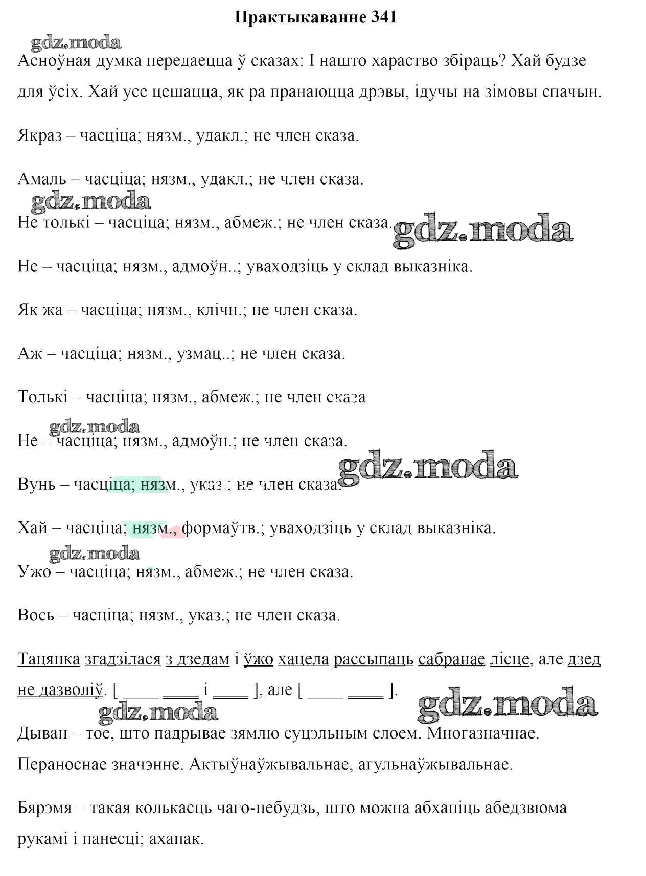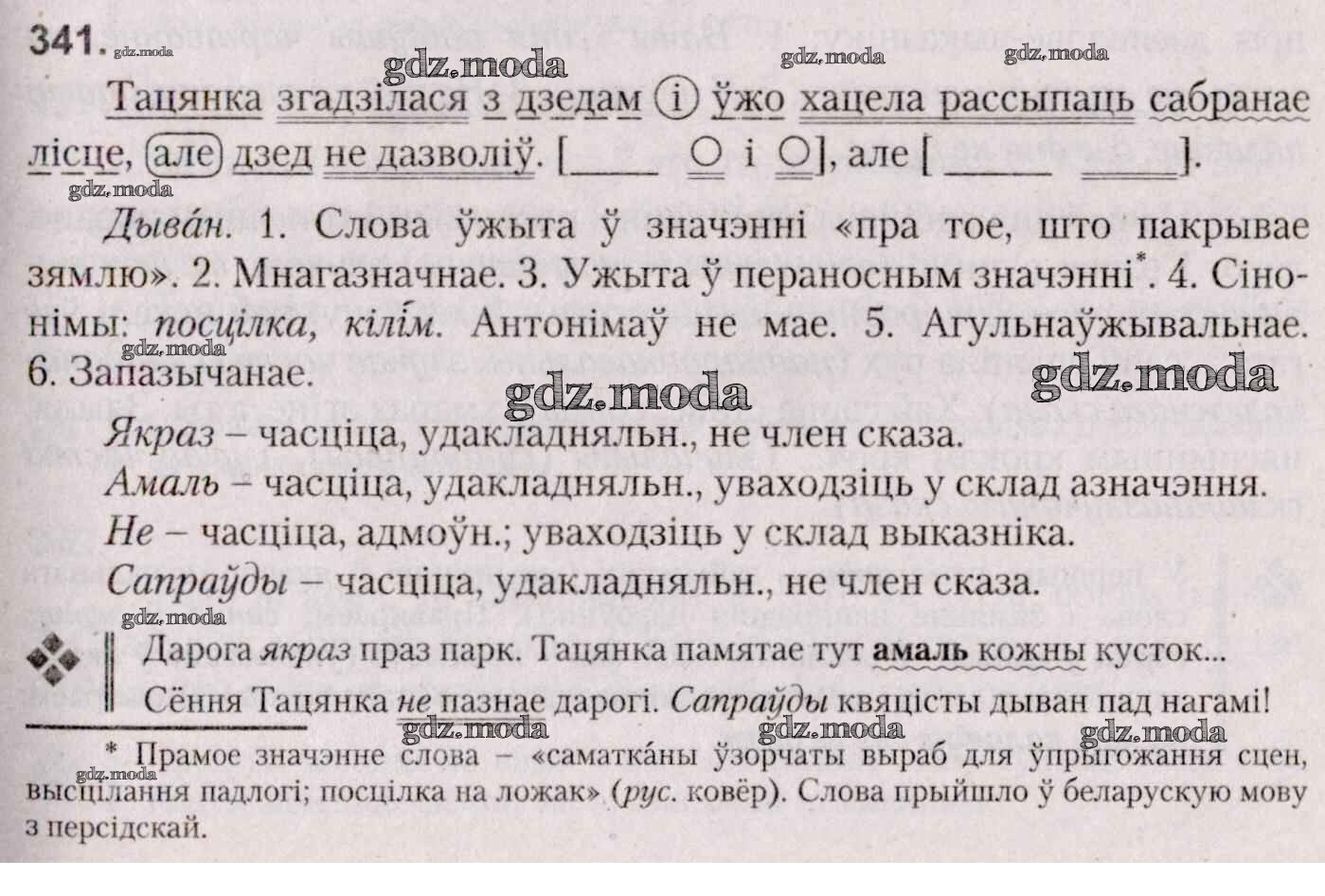 ГДЗ решение к заданию № 341 Белоруская мова 7 класс Валочка Г. М. Национальный институт образования 2020 ФГОС бесплатно на гдз.мода!