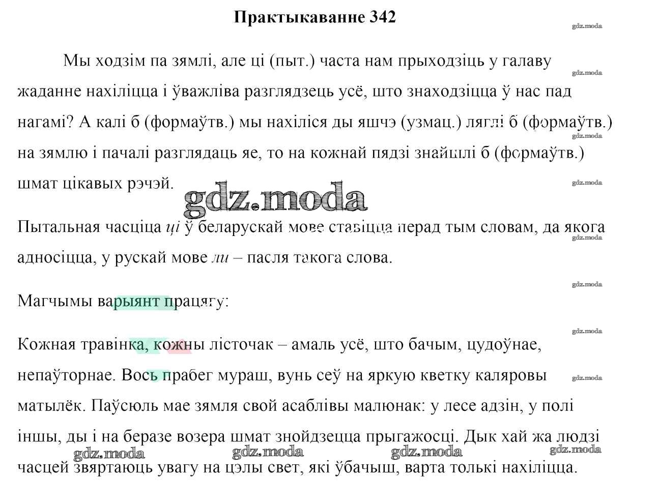 ГДЗ решение к заданию № 342 Белоруская мова 7 класс Валочка Г. М. Национальный институт образования 2020 ФГОС бесплатно на гдз.мода!