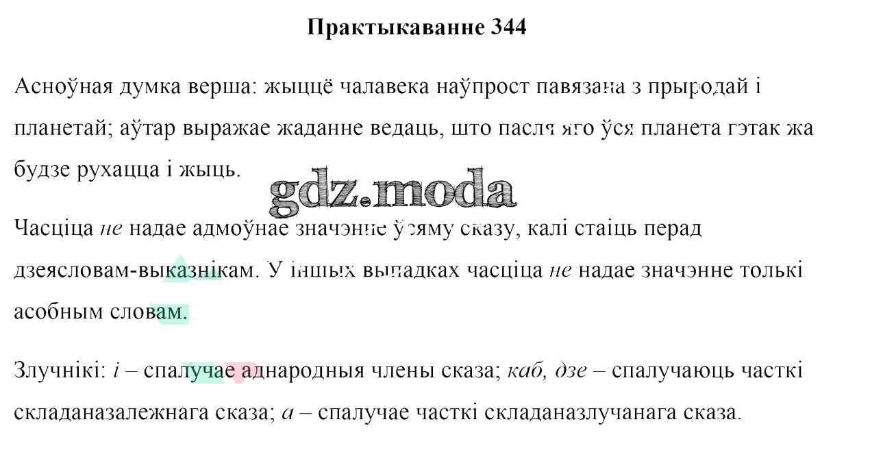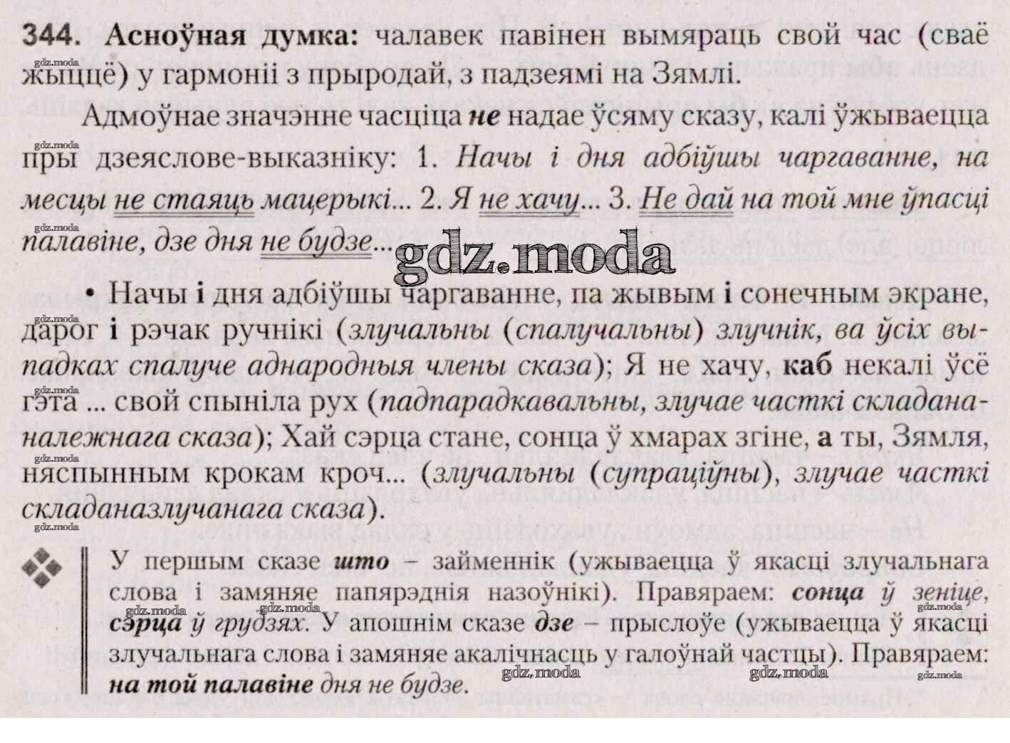 ГДЗ решение к заданию № 344 Белоруская мова 7 класс Валочка Г. М. Национальный институт образования 2020 ФГОС бесплатно на гдз.мода!
