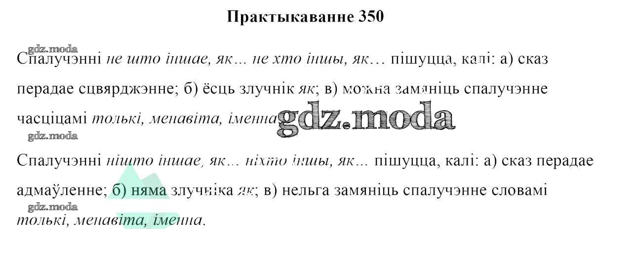 ГДЗ решение к заданию № 350 Белоруская мова 7 класс Валочка Г. М. Национальный институт образования 2020 ФГОС бесплатно на гдз.мода!