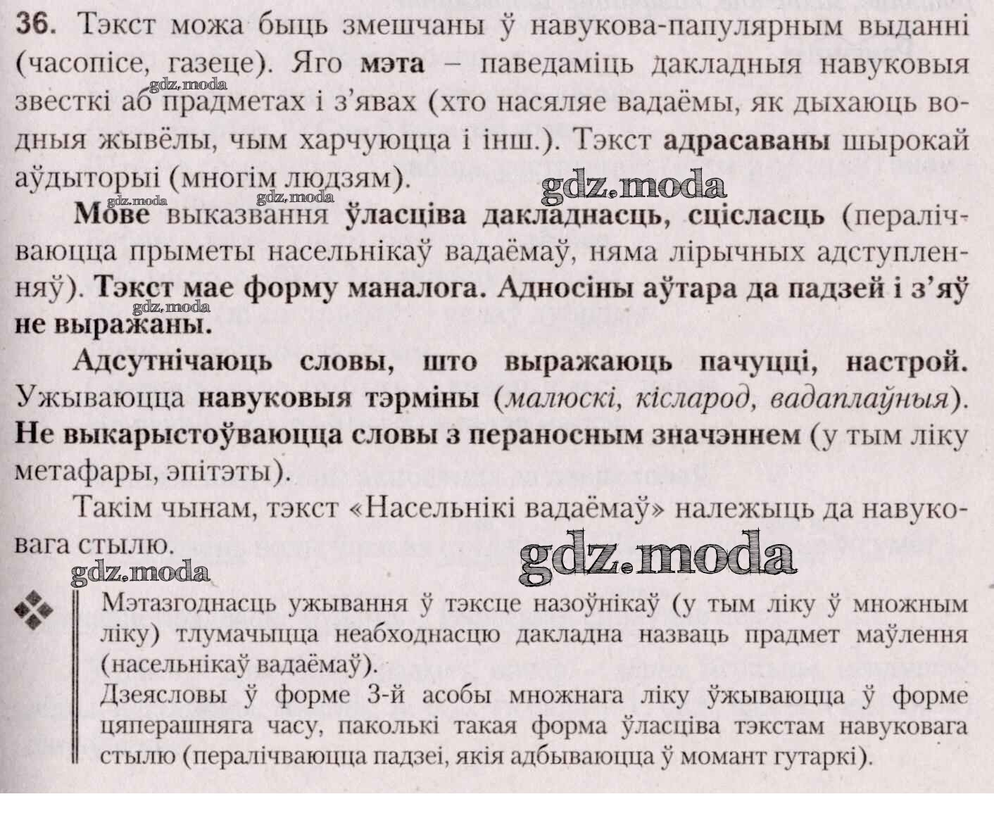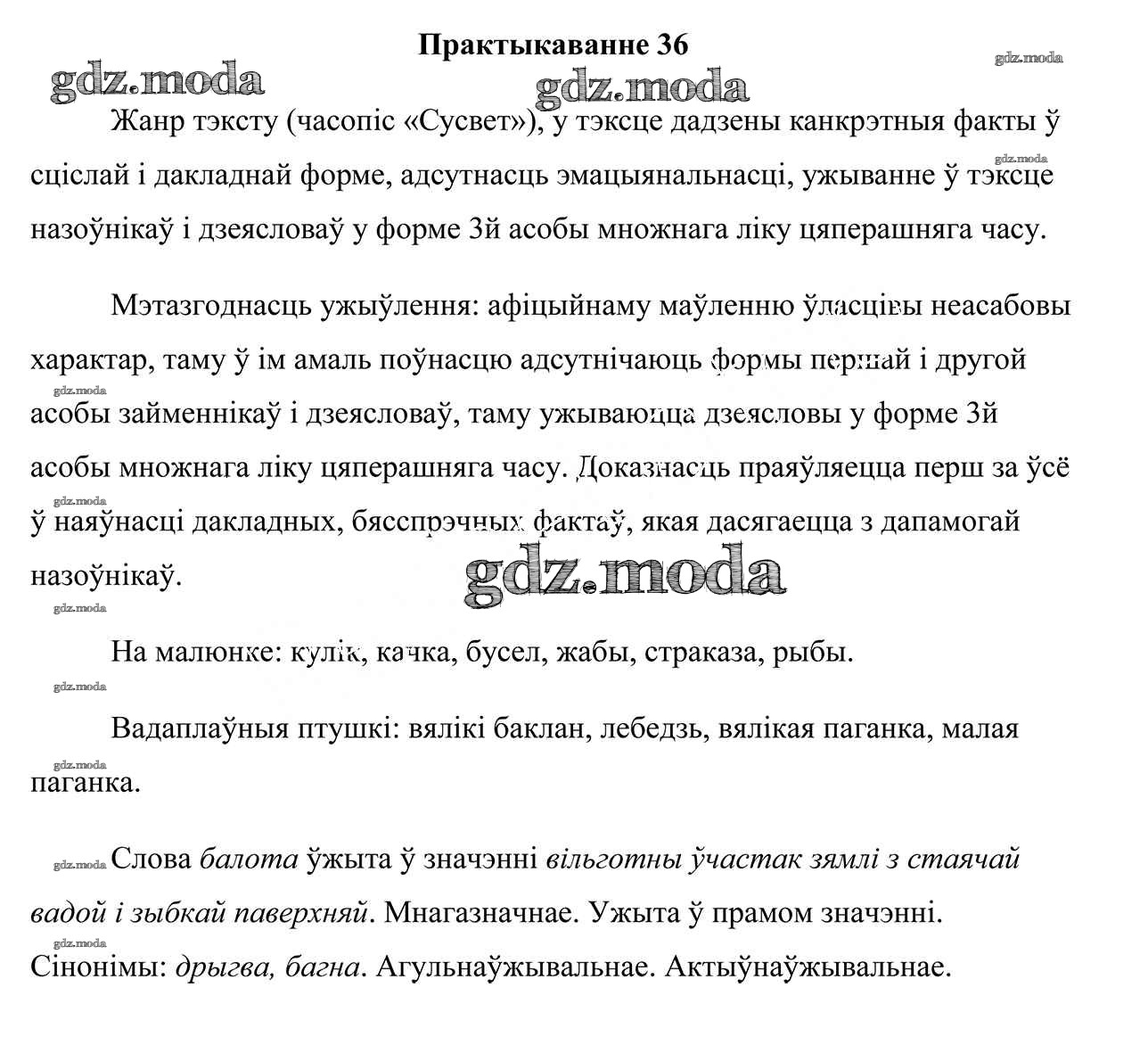 ГДЗ решение к заданию № 36 Белоруская мова 7 класс Валочка Г. М. Национальный институт образования 2020 ФГОС бесплатно на гдз.мода!