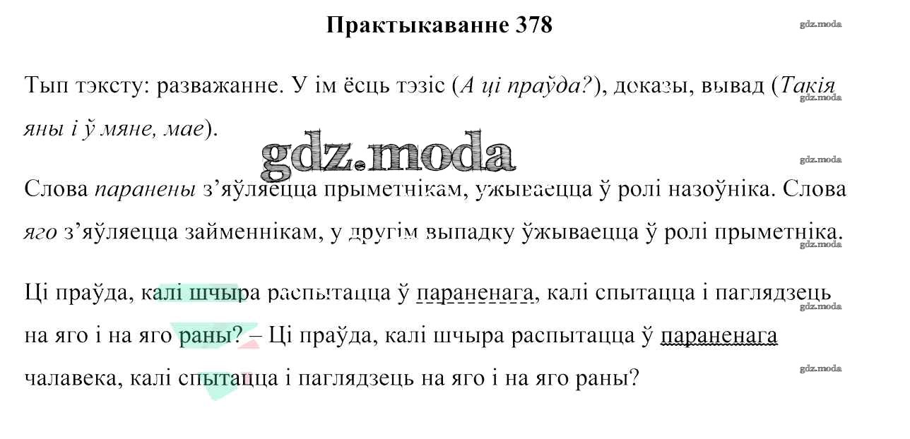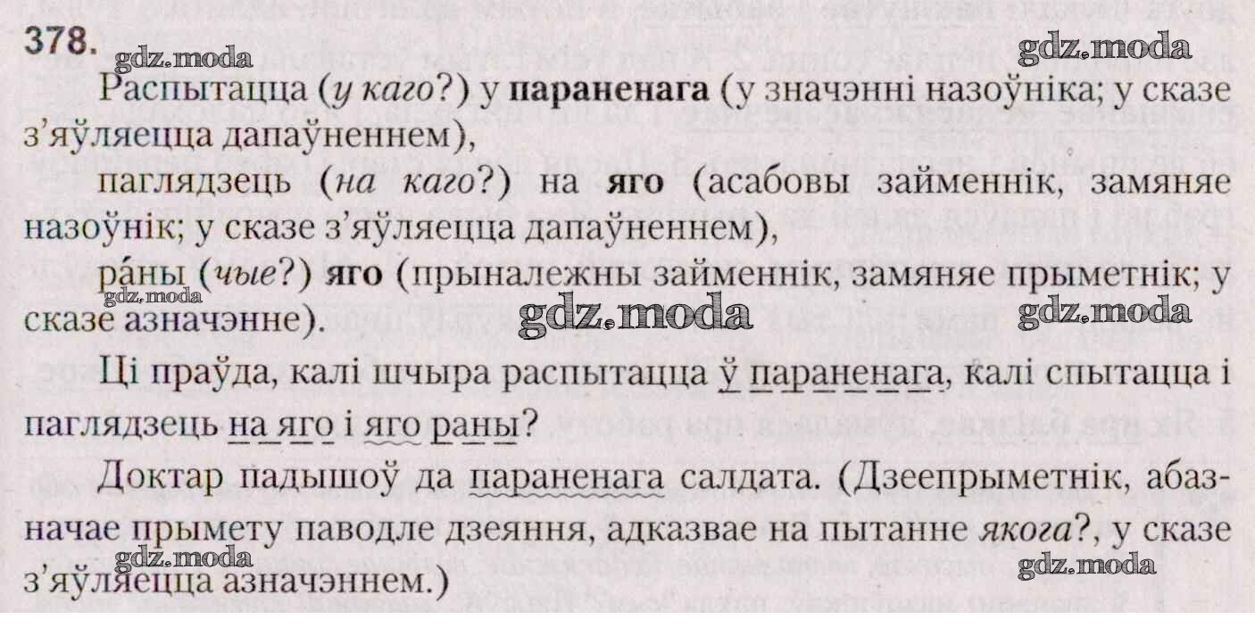 ГДЗ решение к заданию № 378 Белоруская мова 7 класс Валочка Г. М. Национальный институт образования 2020 ФГОС бесплатно на гдз.мода!