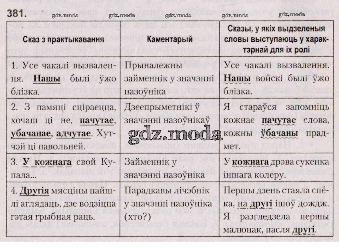 ГДЗ решение к заданию № 381 Белоруская мова 7 класс Валочка Г. М. Национальный институт образования 2020 ФГОС бесплатно на гдз.мода!