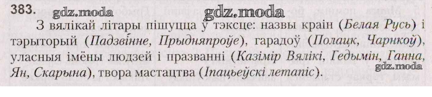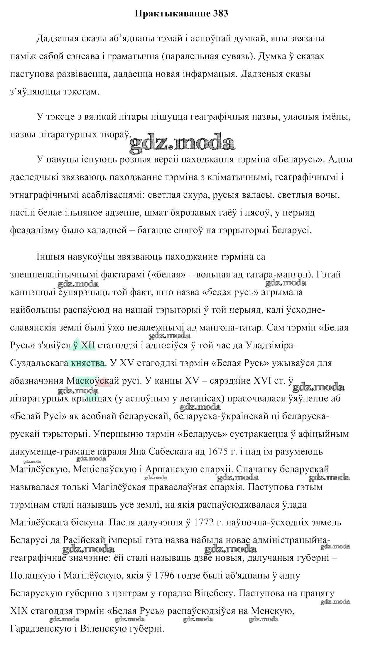 ГДЗ решение к заданию № 383 Белоруская мова 7 класс Валочка Г. М. Национальный институт образования 2020 ФГОС бесплатно на гдз.мода!