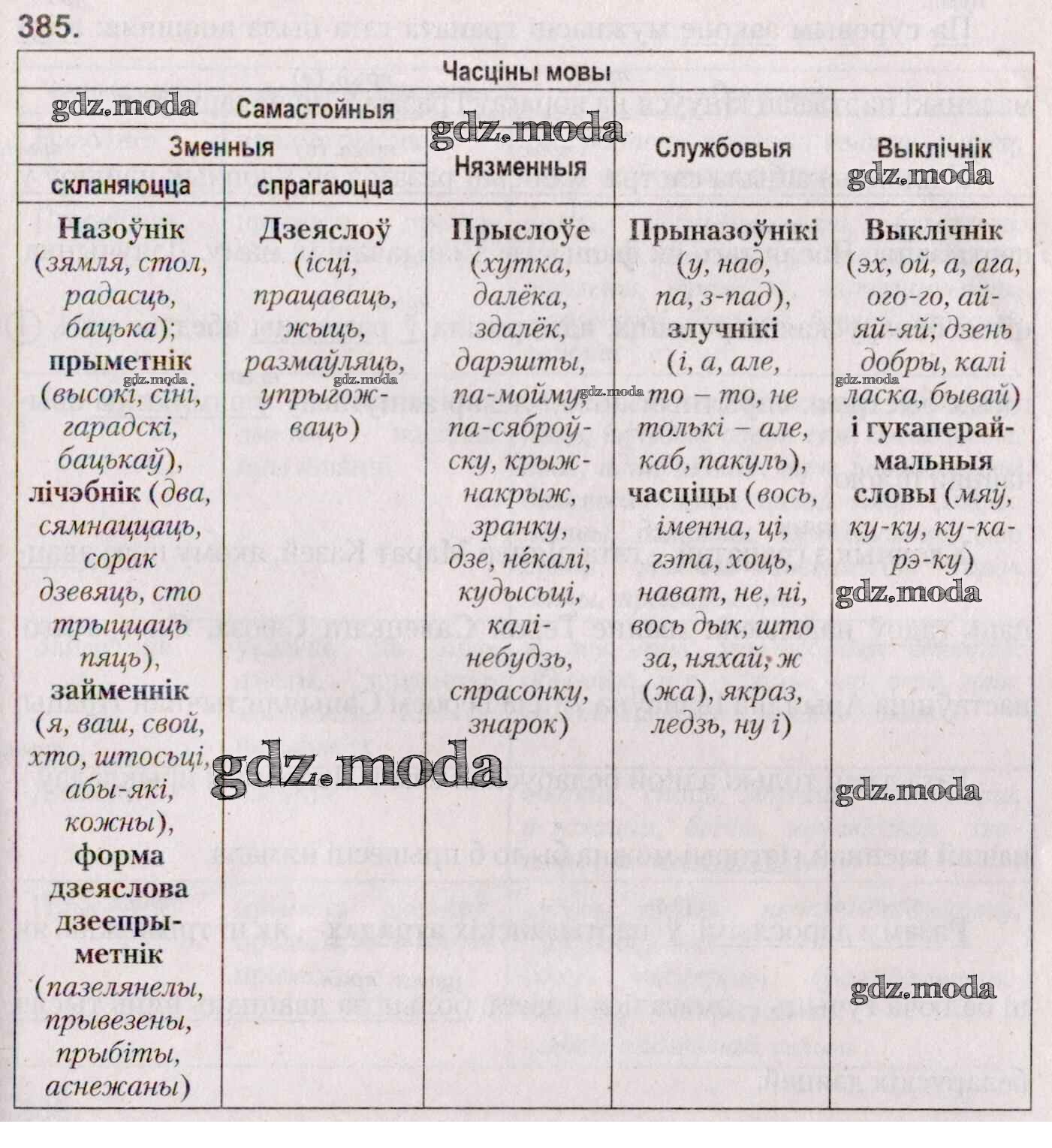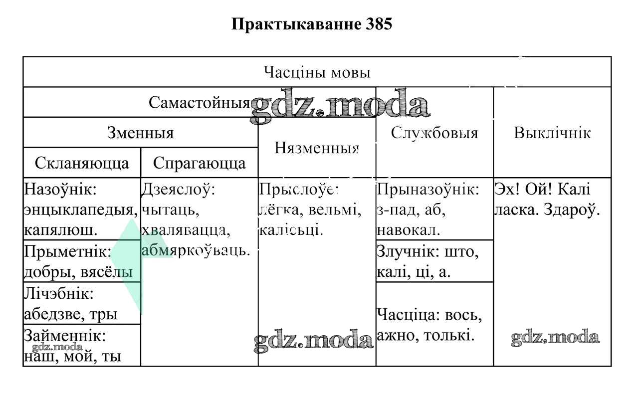 ГДЗ решение к заданию № 385 Белоруская мова 7 класс Валочка Г. М. Национальный институт образования 2020 ФГОС бесплатно на гдз.мода!