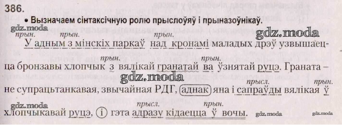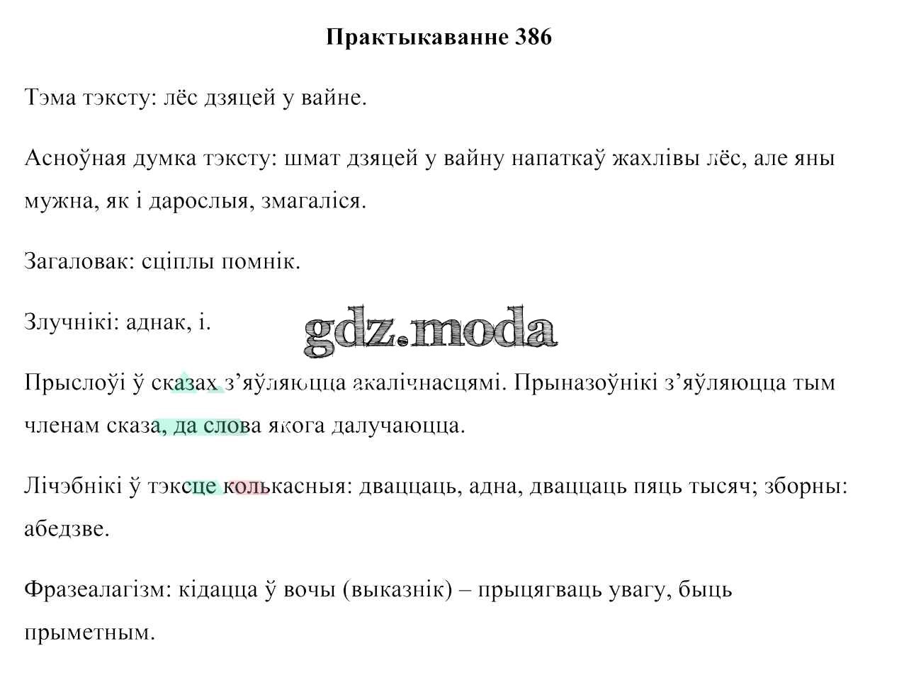 ГДЗ решение к заданию № 386 Белоруская мова 7 класс Валочка Г. М. Национальный институт образования 2020 ФГОС бесплатно на гдз.мода!