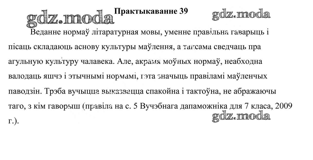 ГДЗ решение к заданию № 39 Белоруская мова 7 класс Валочка Г. М. Национальный институт образования 2020 ФГОС бесплатно на гдз.мода!