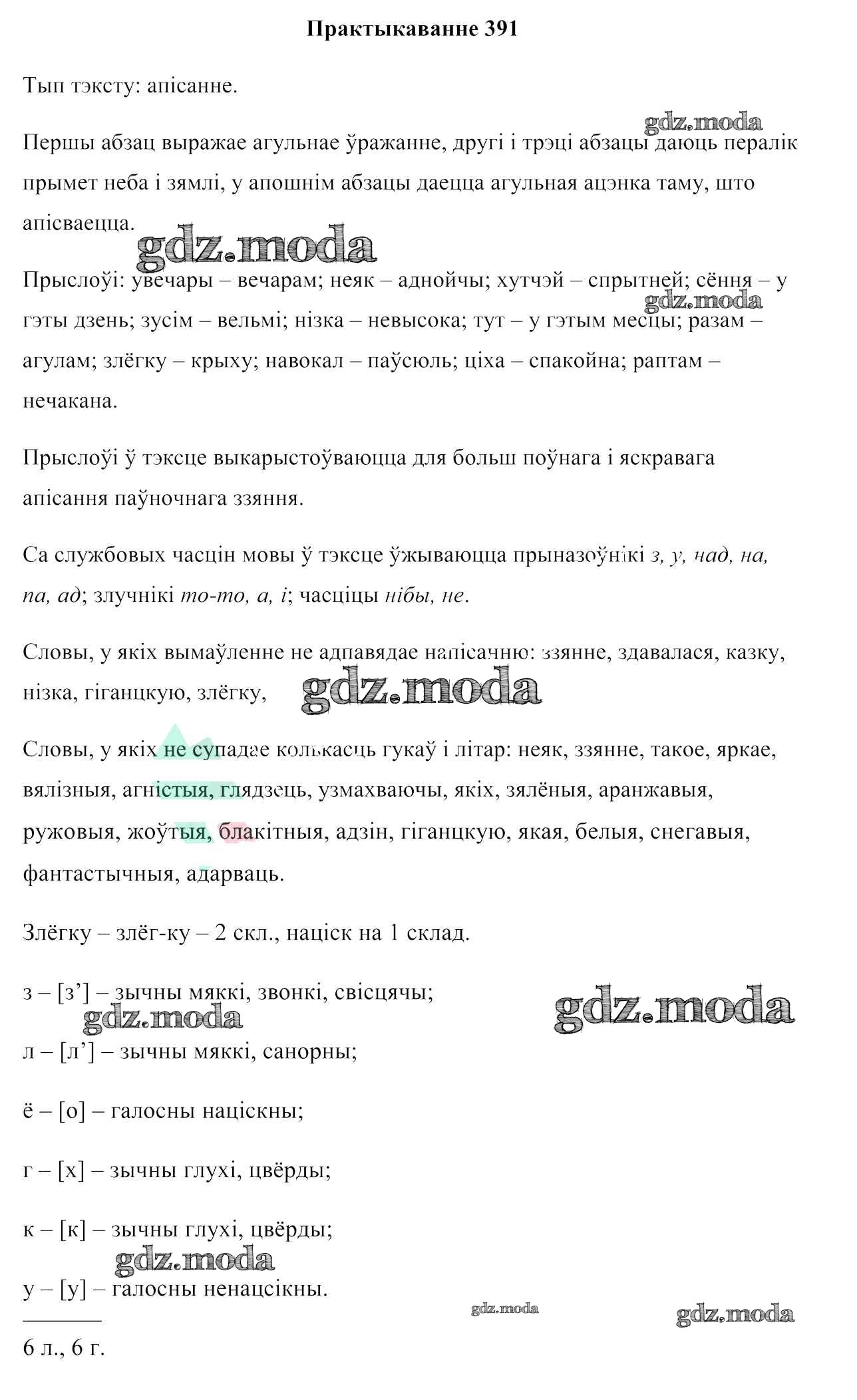 ГДЗ решение к заданию № 391 Белоруская мова 7 класс Валочка Г. М. Национальный институт образования 2020 ФГОС бесплатно на гдз.мода!