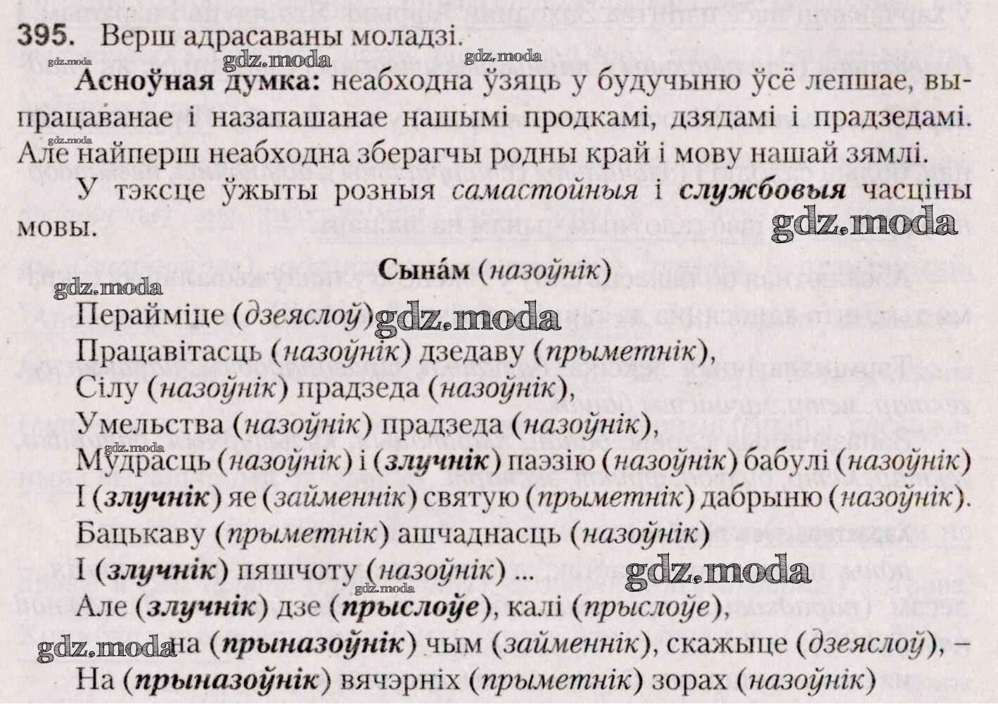 ГДЗ решение к заданию № 395 Белоруская мова 7 класс Валочка Г. М. Национальный институт образования 2020 ФГОС бесплатно на гдз.мода!