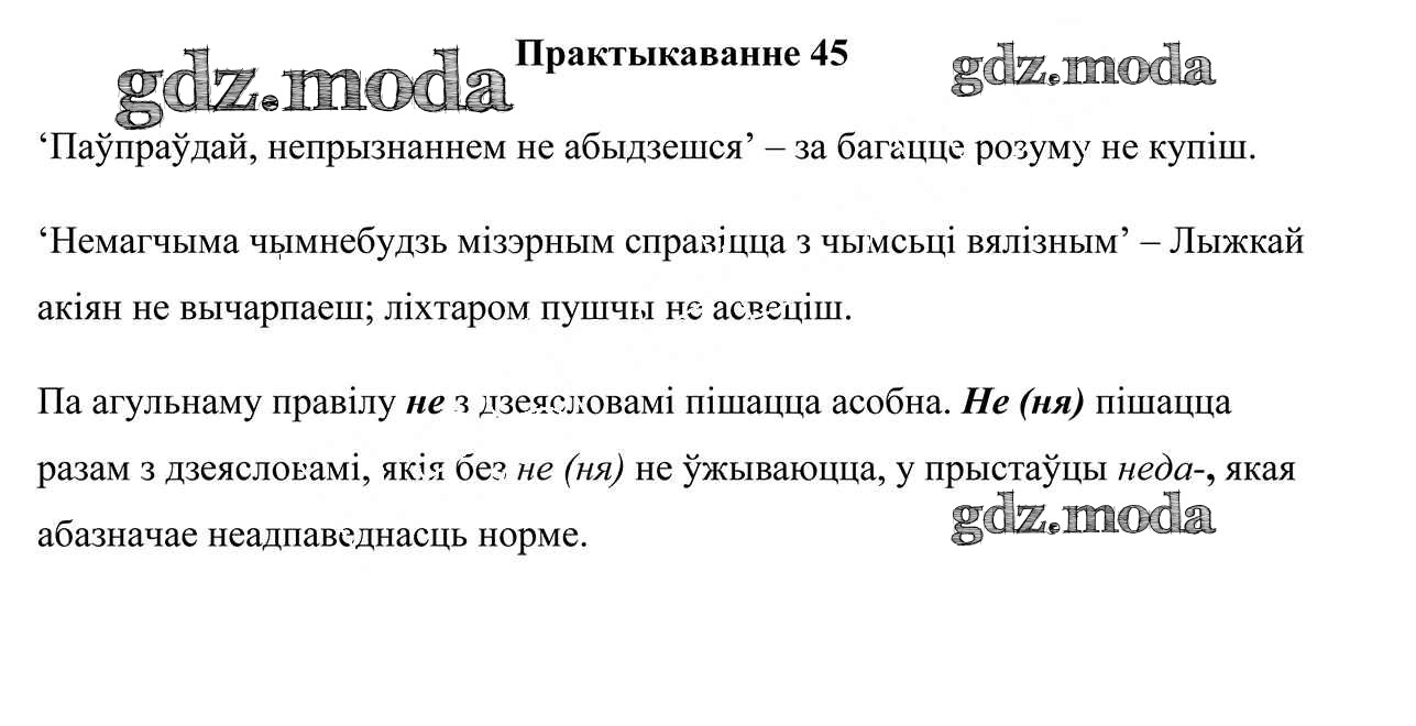 ГДЗ решение к заданию № 45 Белоруская мова 7 класс Валочка Г. М. Национальный институт образования 2020 ФГОС бесплатно на гдз.мода!
