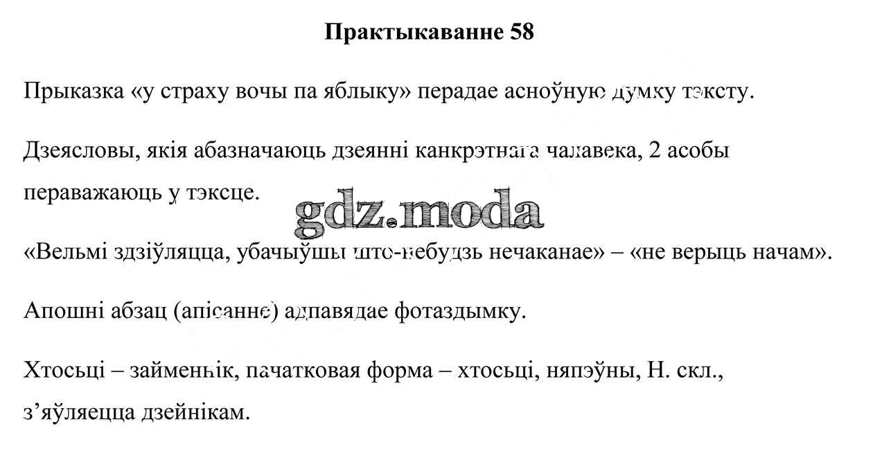 ГДЗ решение к заданию № 58 Белоруская мова 7 класс Валочка Г. М. Национальный институт образования 2020 ФГОС бесплатно на гдз.мода!