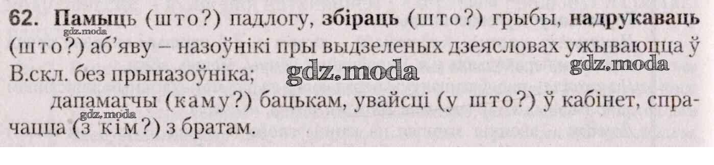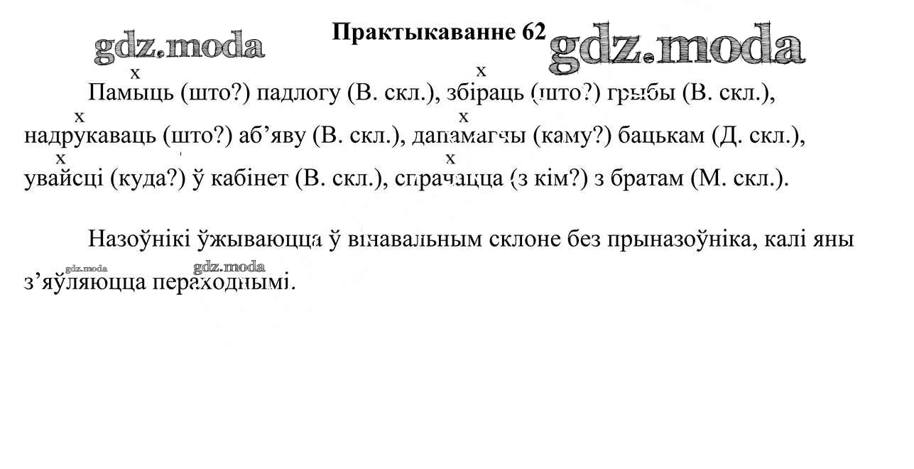 ГДЗ решение к заданию № 62 Белоруская мова 7 класс Валочка Г. М. Национальный институт образования 2020 ФГОС бесплатно на гдз.мода!