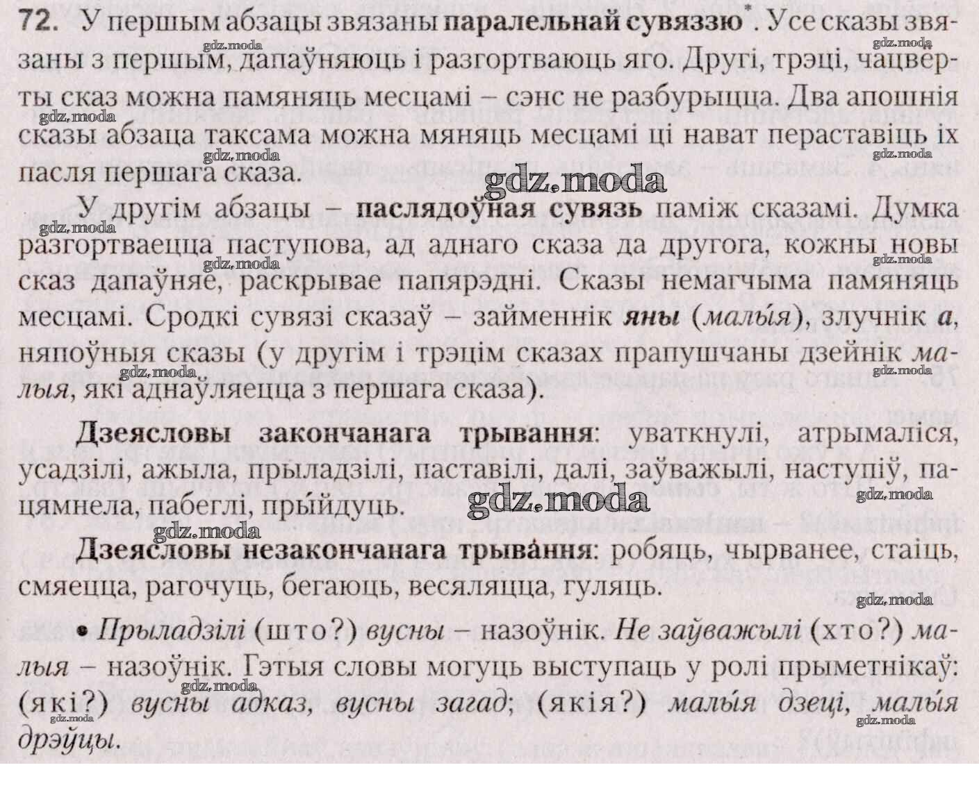 ГДЗ решение к заданию № 72 Белоруская мова 7 класс Валочка Г. М. Национальный институт образования 2020 ФГОС бесплатно на гдз.мода!