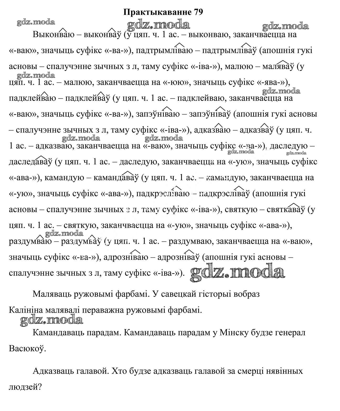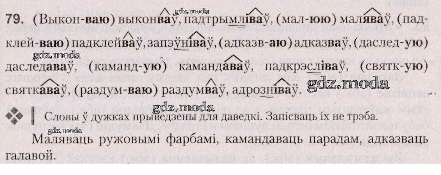 ГДЗ решение к заданию № 79 Белоруская мова 7 класс Валочка Г. М. Национальный институт образования 2020 ФГОС бесплатно на гдз.мода!