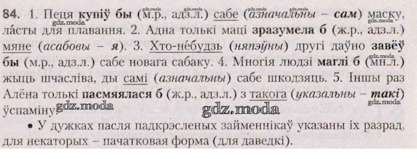 ГДЗ решение к заданию № 84 Белоруская мова 7 класс Валочка Г. М. Национальный институт образования 2020 ФГОС бесплатно на гдз.мода!