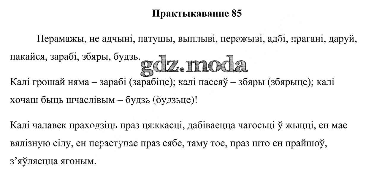 ГДЗ решение к заданию № 85 Белоруская мова 7 класс Валочка Г. М. Национальный институт образования 2020 ФГОС бесплатно на гдз.мода!