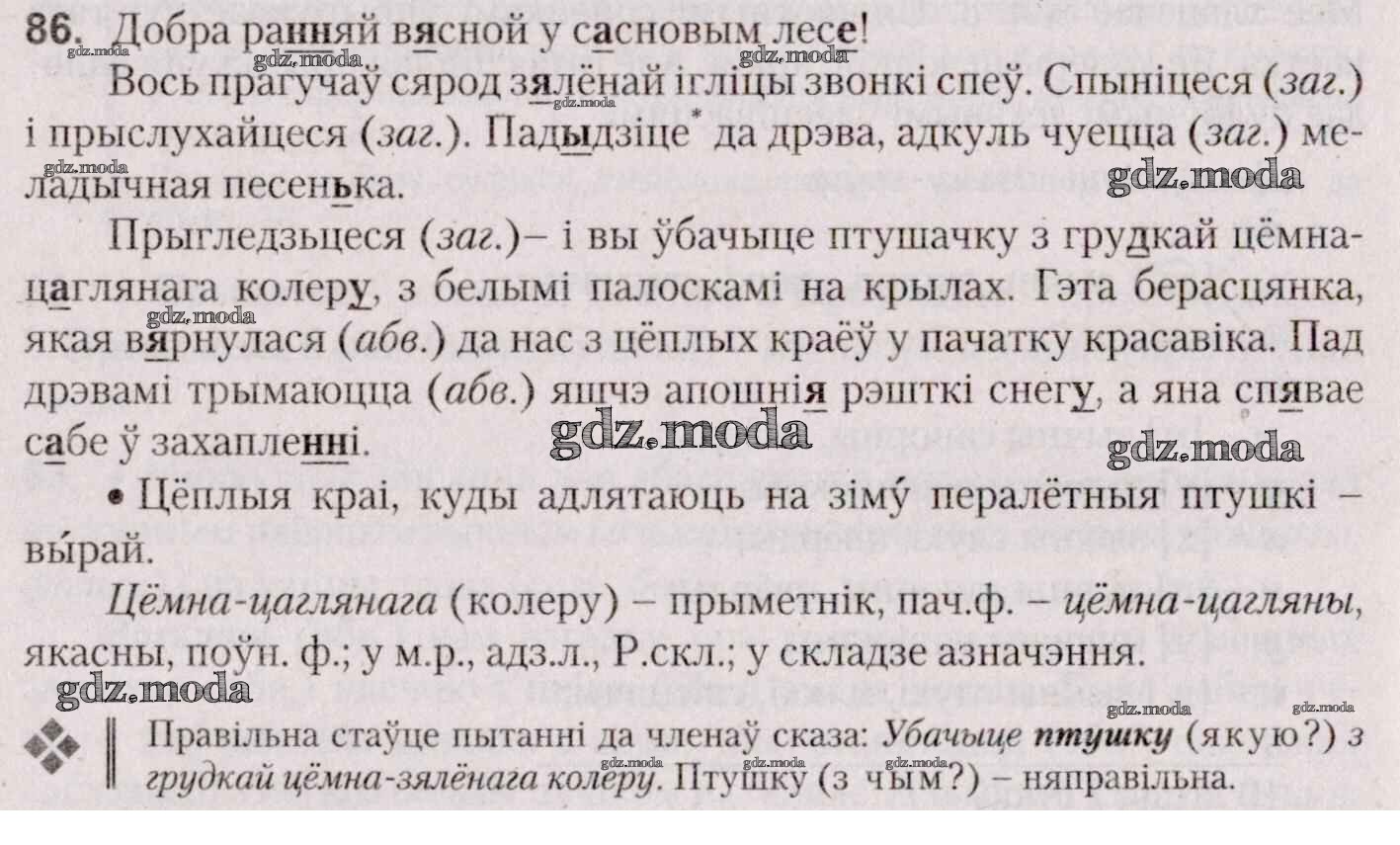 ГДЗ решение к заданию № 86 Белоруская мова 7 класс Валочка Г. М. Национальный институт образования 2020 ФГОС бесплатно на гдз.мода!