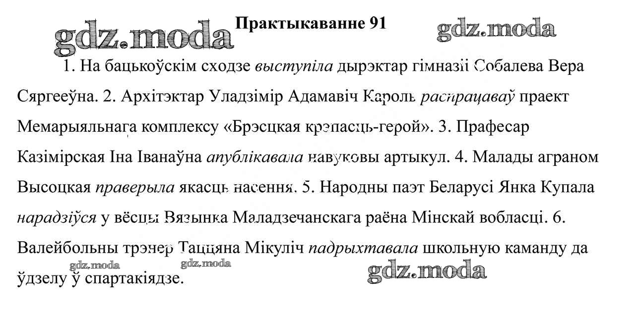 ГДЗ решение к заданию № 91 Белоруская мова 7 класс Валочка Г. М. Национальный институт образования 2020 ФГОС бесплатно на гдз.мода!