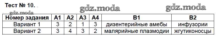 ГДЗ решение к заданию № 10 Биология 7 класс КИМ Артемьева Н.А. ВАКО 2018 ФГОС бесплатно на гдз.мода!