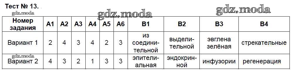 ГДЗ решение к заданию № 13 Биология 7 класс КИМ Артемьева Н.А. ВАКО 2018 ФГОС бесплатно на гдз.мода!